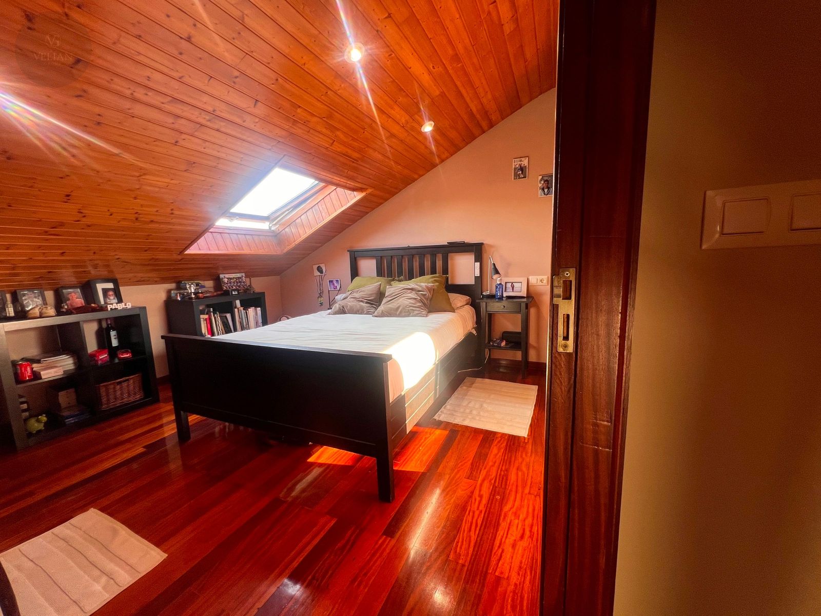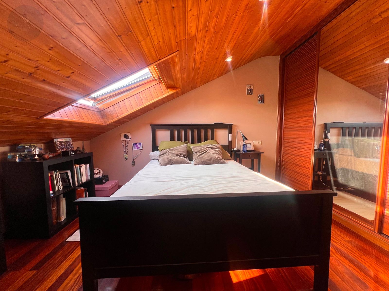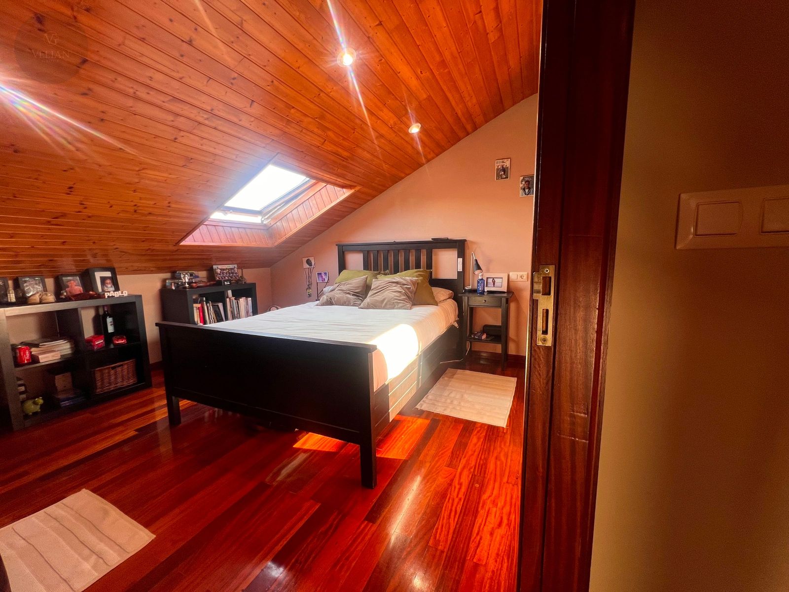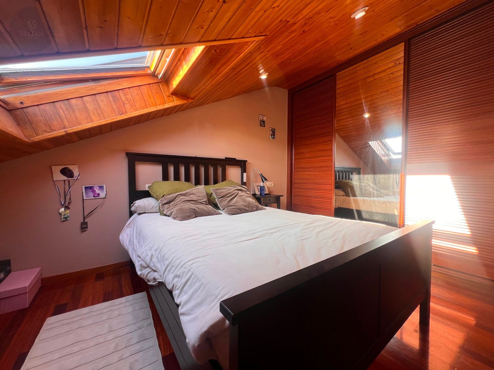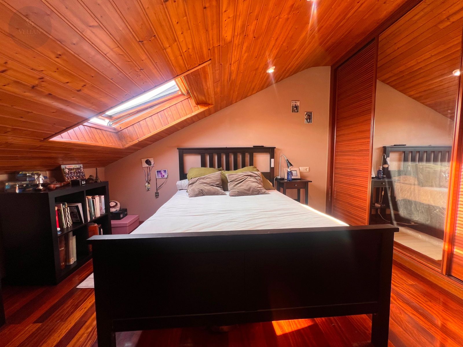 En la planta superior, tres dormitorios —dos de ellos abuhardillados con encanto propio y uno más amplio— junto con un baño completo con ducha.