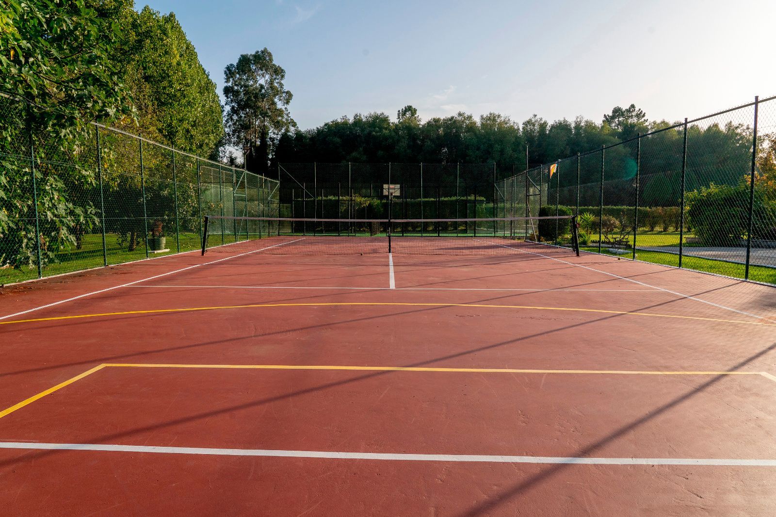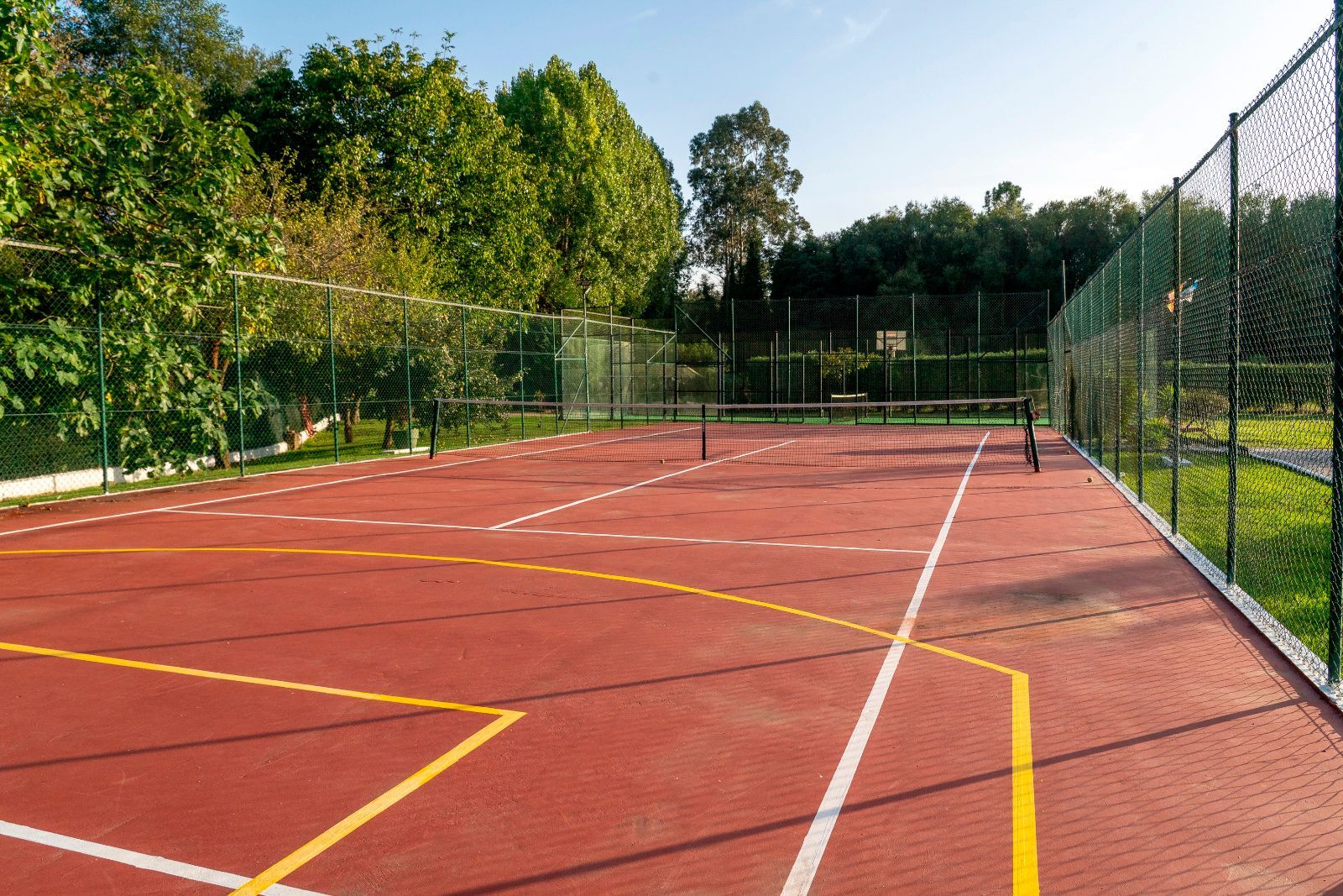 En el exterior, la protagonista es la piscina de agua salada, con un porche cubierto con zona de estar y comedor ideal para celebraciones. La finca suma además extras que marcan la diferencia: pista de tenis, pista multiusos, zona infantil y terrazas distribuidas estratégicamente para disfrutar del sol durante todo el día.
