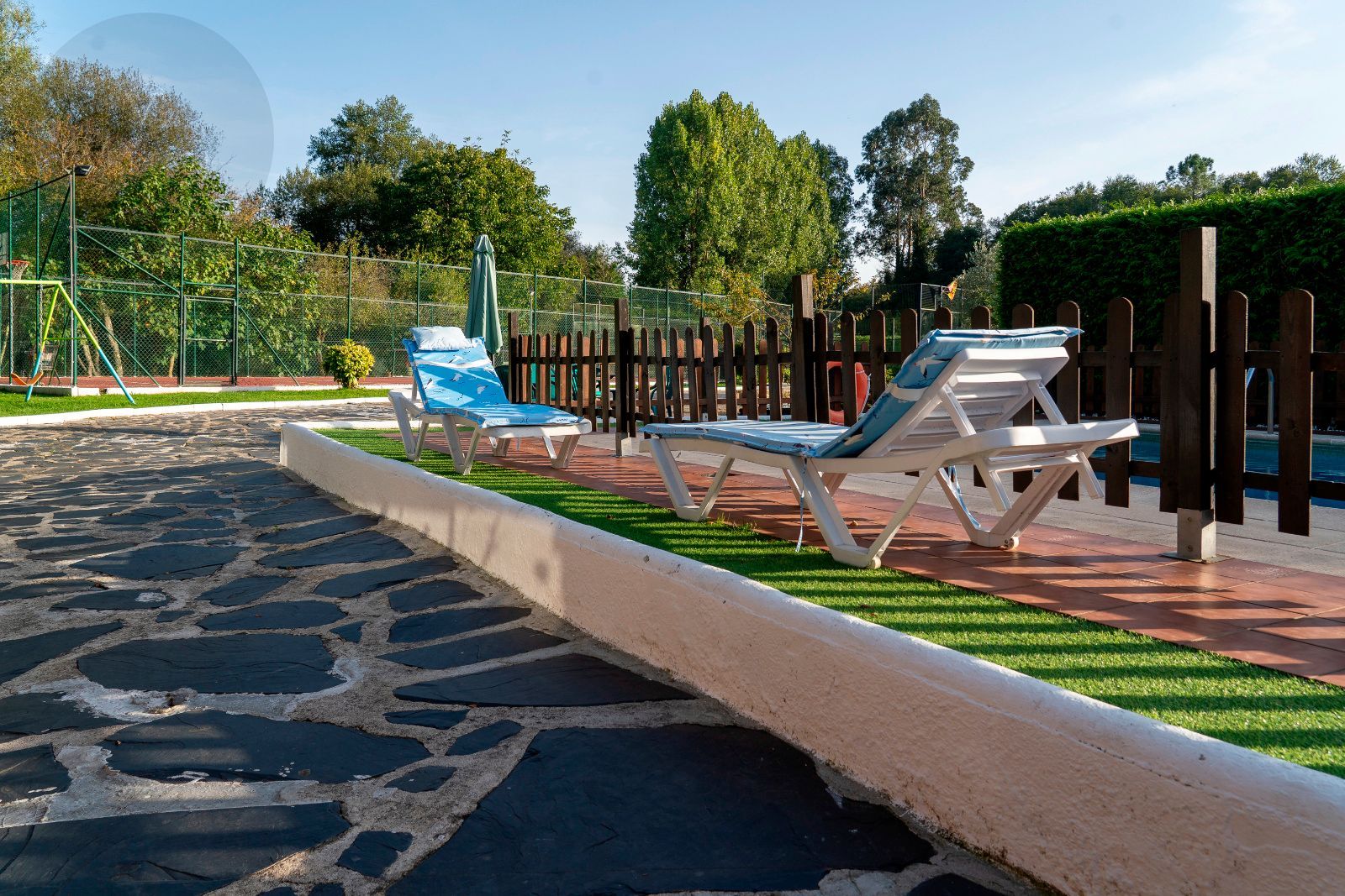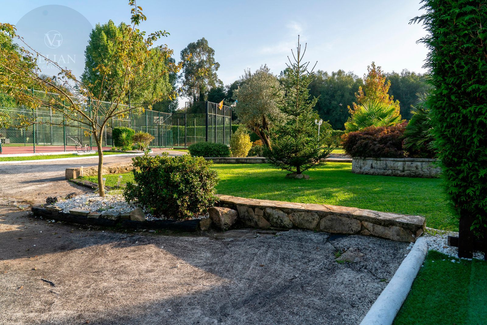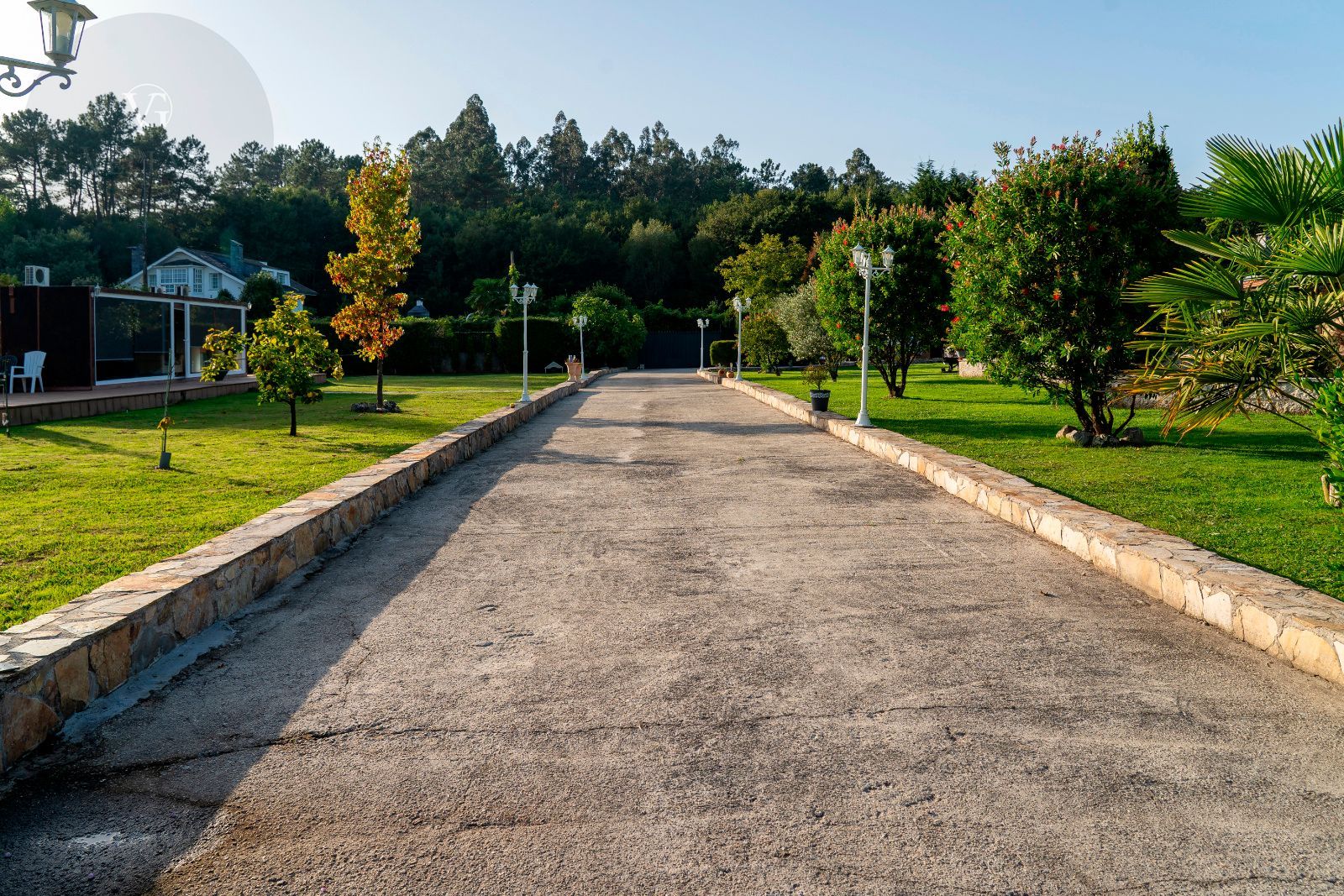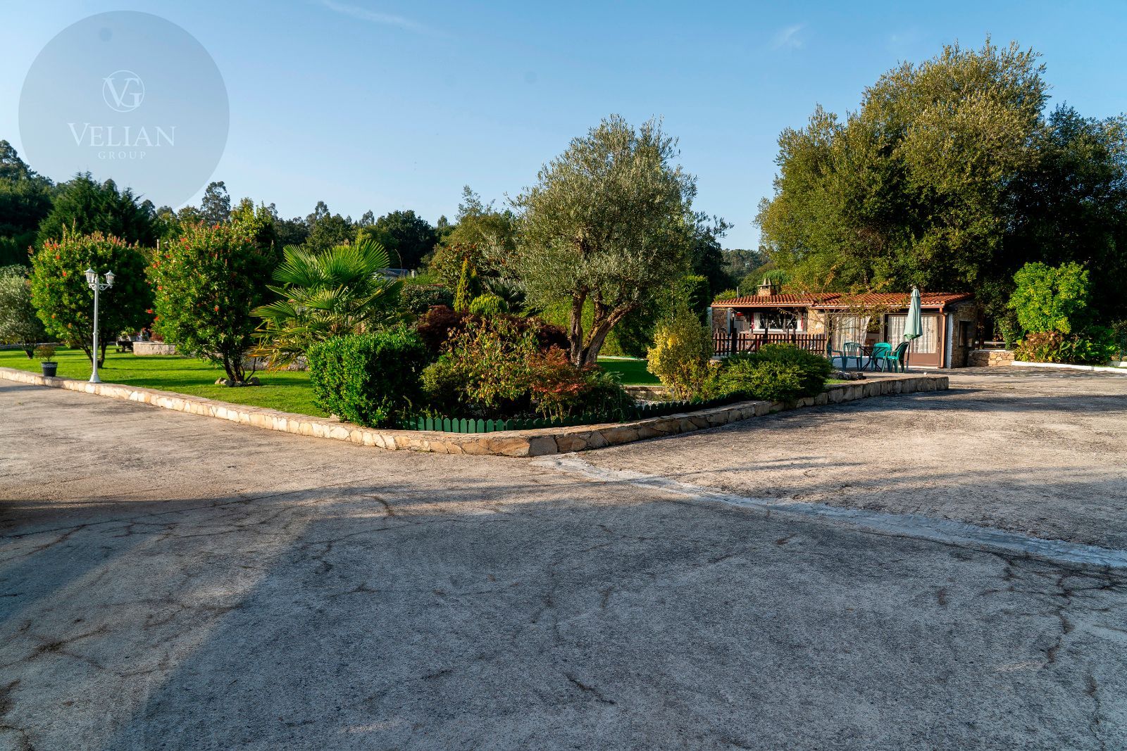 El jardín es uno de los grandes atractivos de Casa Areosa, con césped natural, arbolado, senderos de piedra y un diseño paisajístico que aporta belleza y armonía al conjunto. Todo el entorno ha sido concebido para el descanso, el deporte y la vida al aire libre, en un espacio cerrado que garantiza seguridad y privacidad.