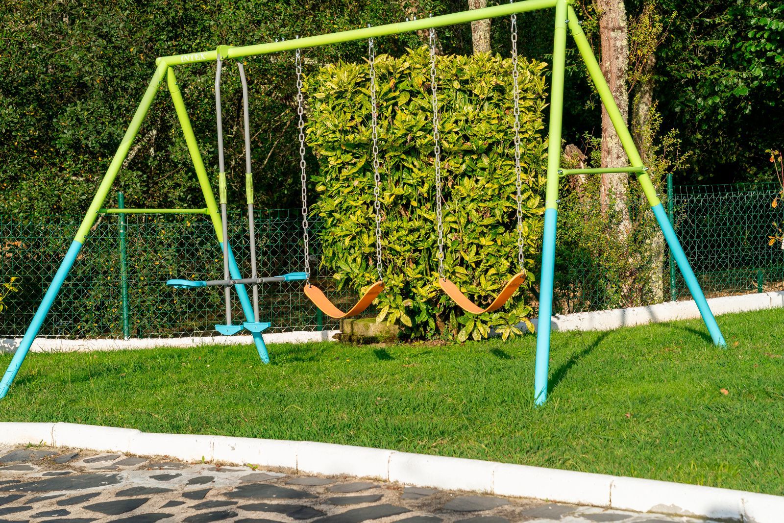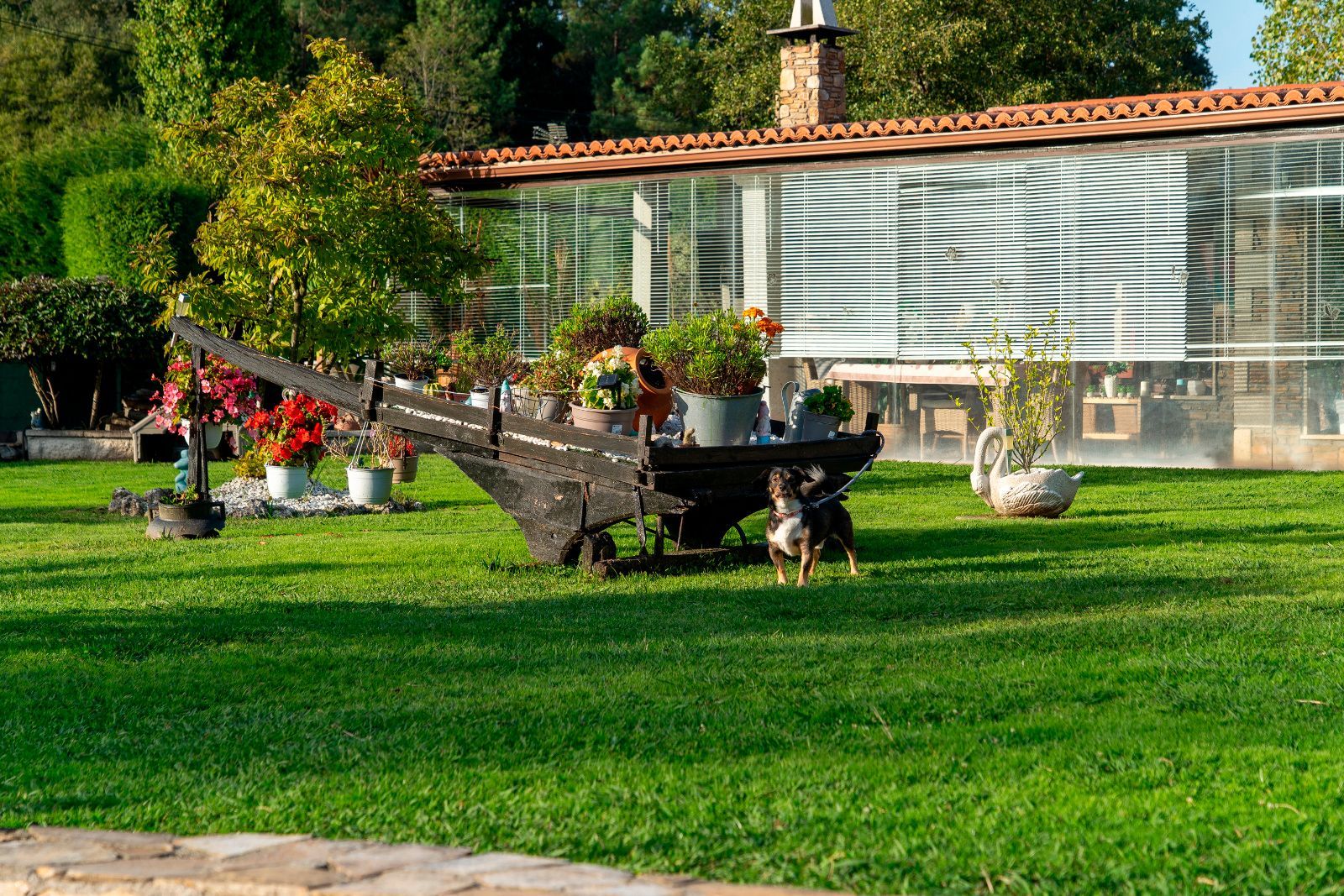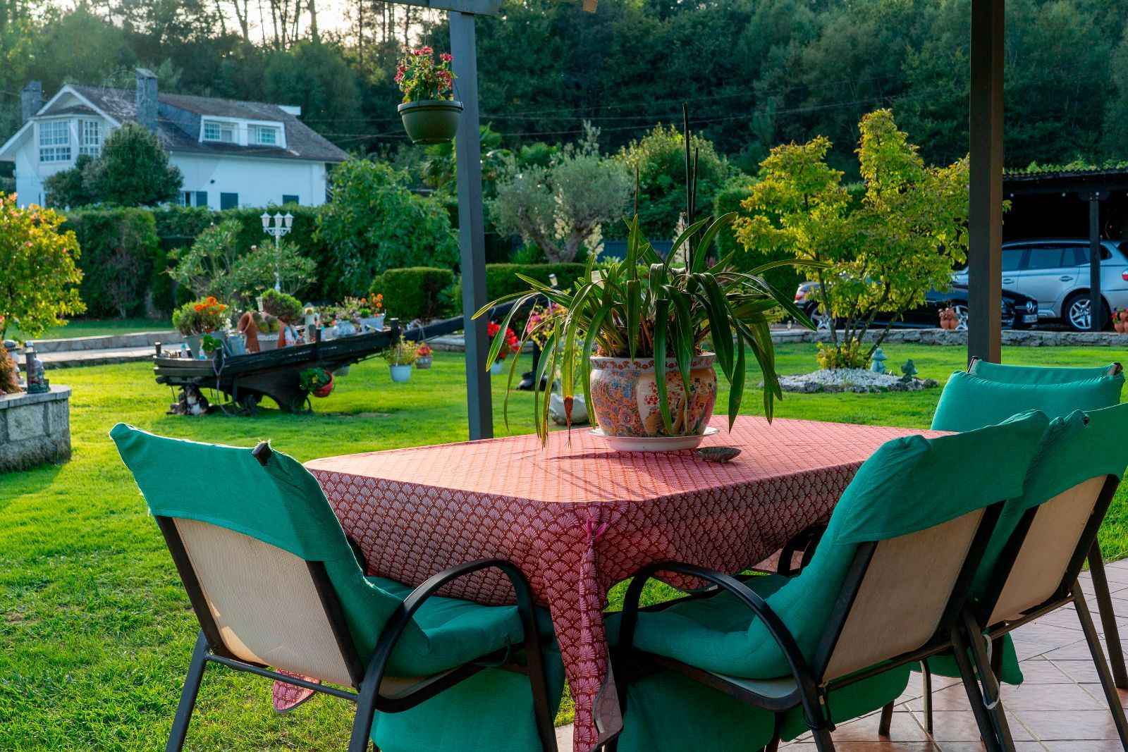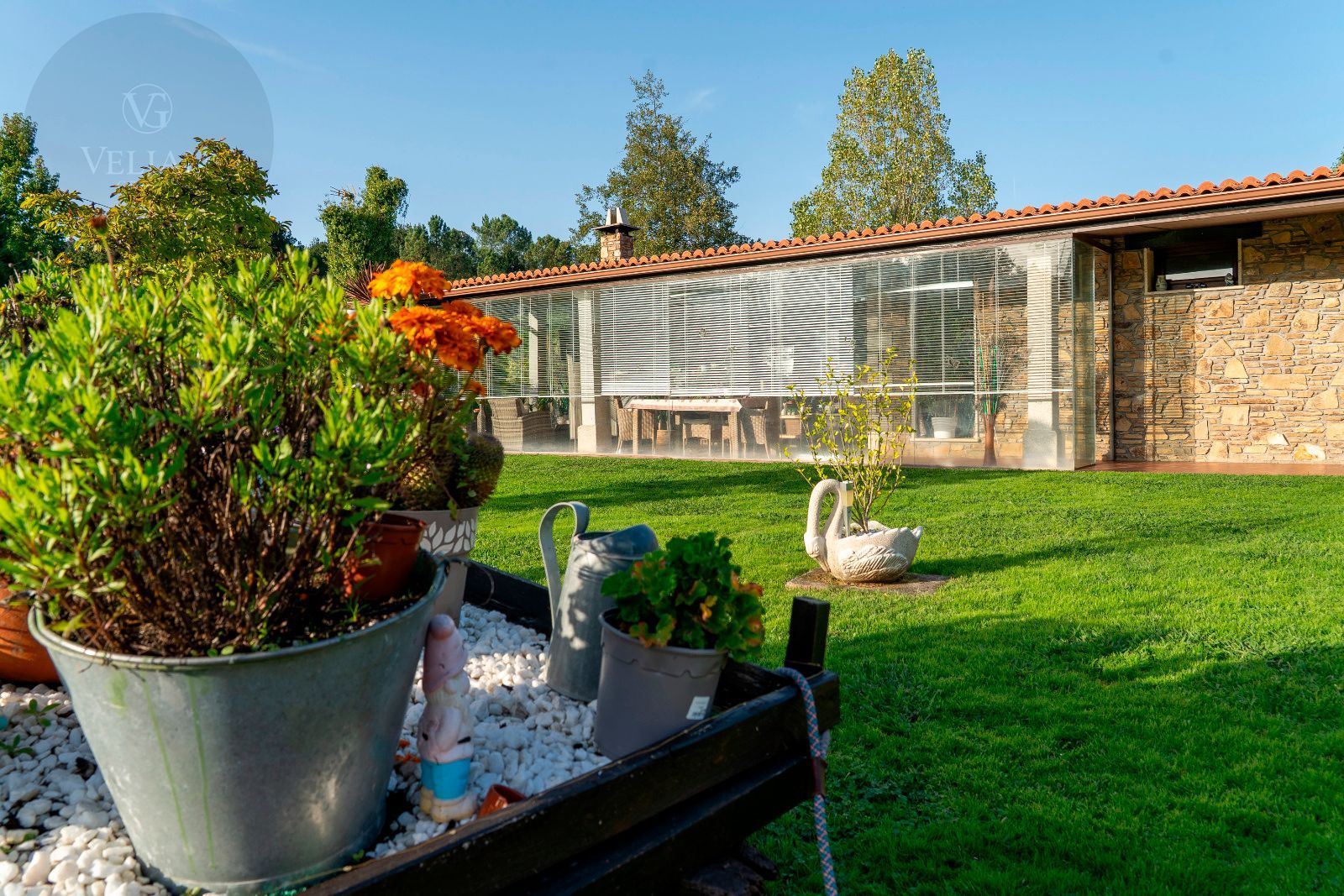 El jardín es uno de los grandes atractivos de Casa Areosa, con césped natural, arbolado, senderos de piedra y un diseño paisajístico que aporta belleza y armonía al conjunto. Todo el entorno ha sido concebido para el descanso, el deporte y la vida al aire libre, en un espacio cerrado que garantiza seguridad y privacidad.