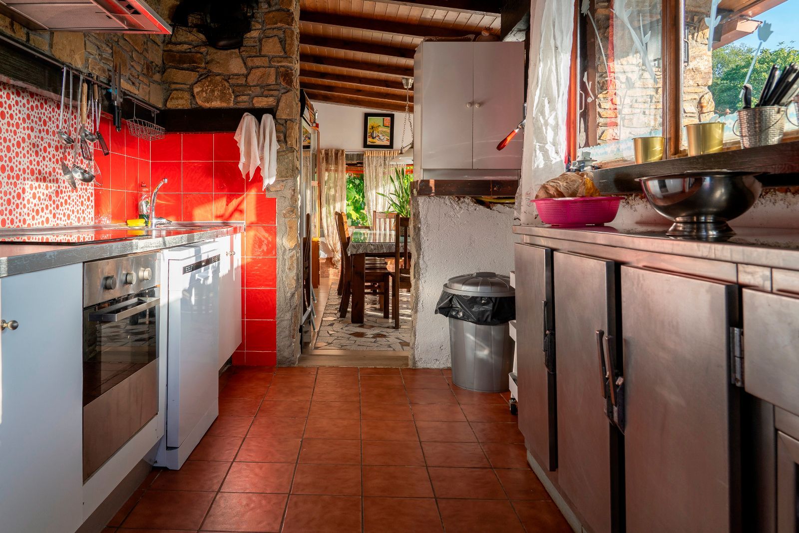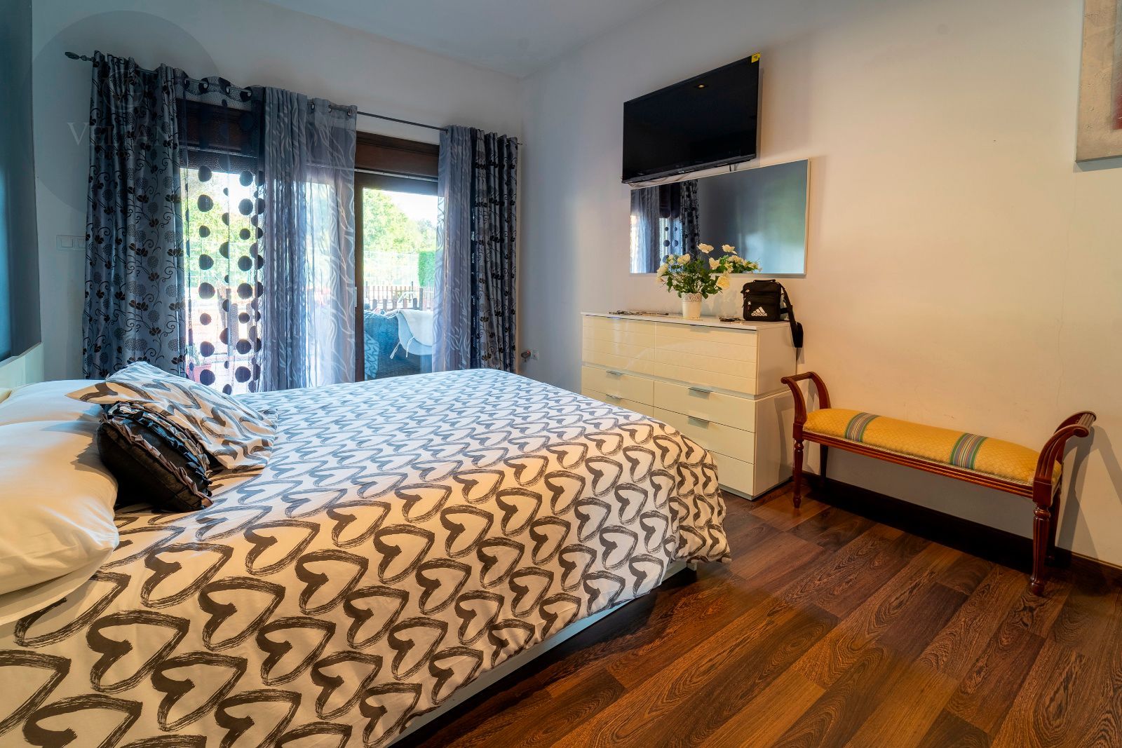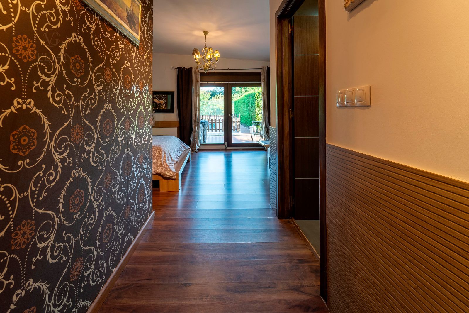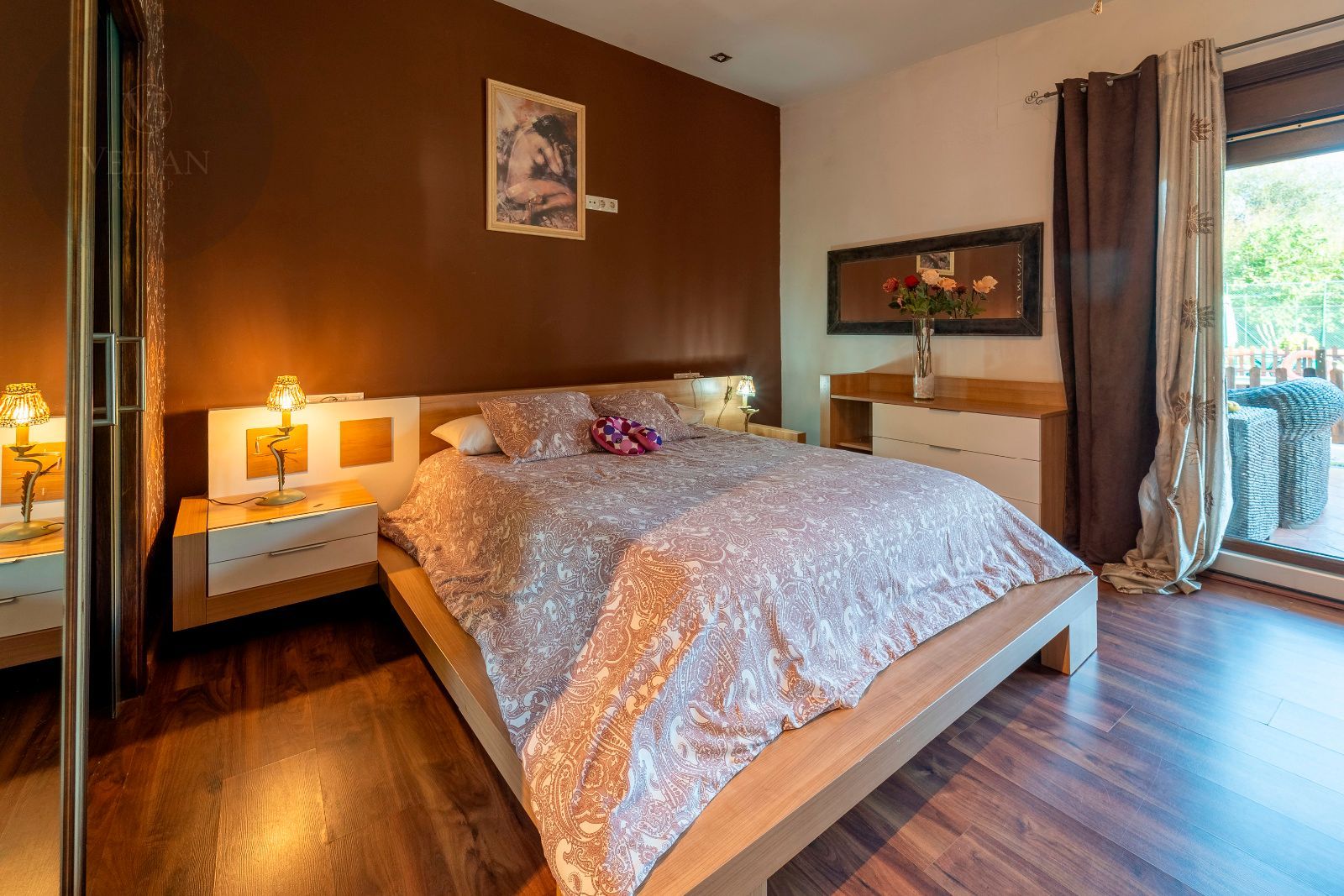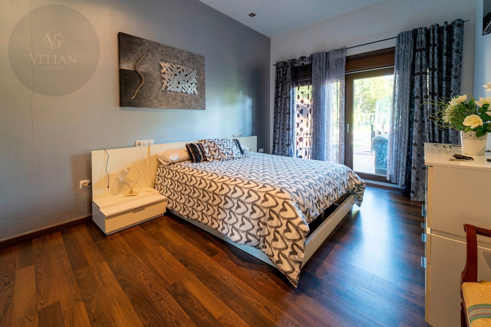 La casa principal cuenta con tres dormitorios y tres baños, destacando el dormitorio principal con acceso directo al exterior y un baño en suite que dispone de jacuzzi y ducha, creando un espacio íntimo de bienestar. El amplio salón comedor conecta con la terraza y el jardín, mientras que la cocina, moderna y completamente equipada, combina diseño y funcionalidad. La segunda construcción independiente añade dos dormitorios y un baño, perfecta para invitados o familiares que busquen privacidad dentro de la misma finca.