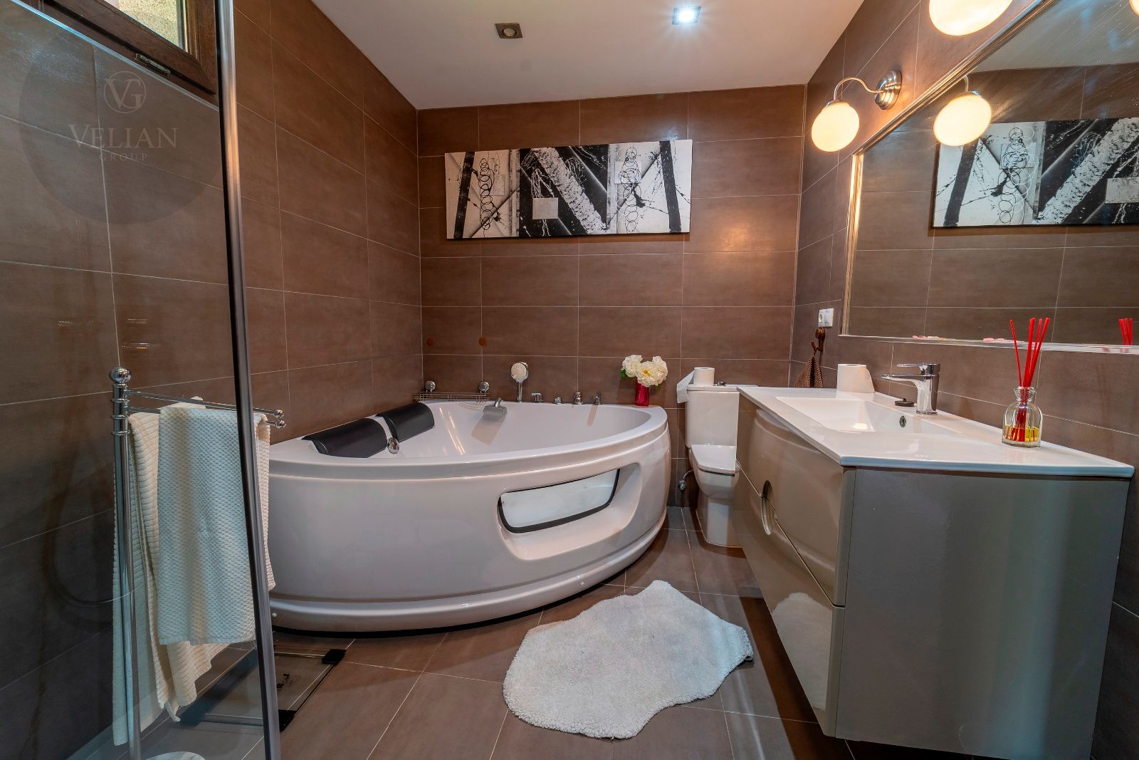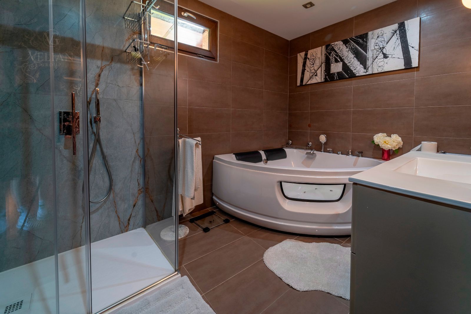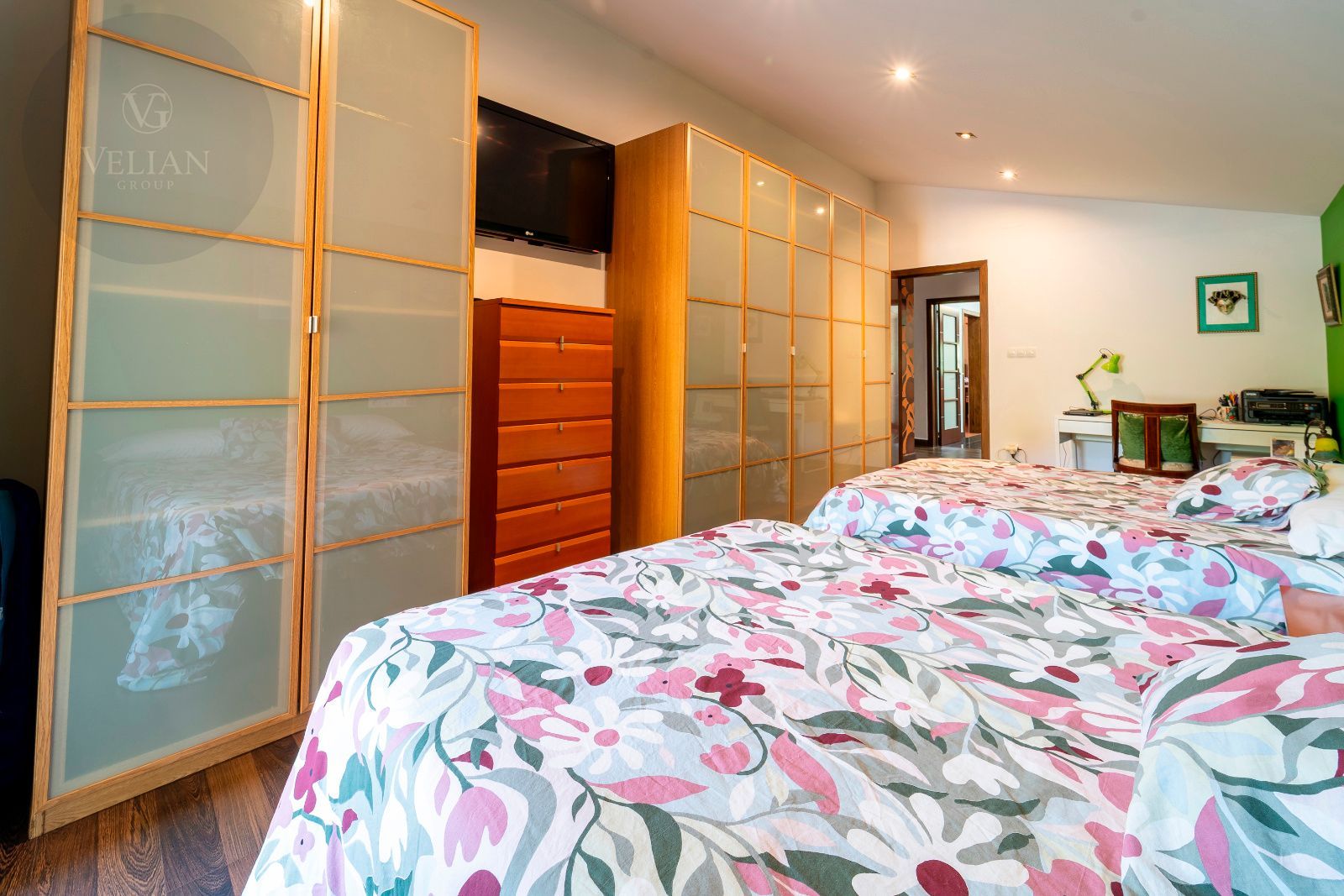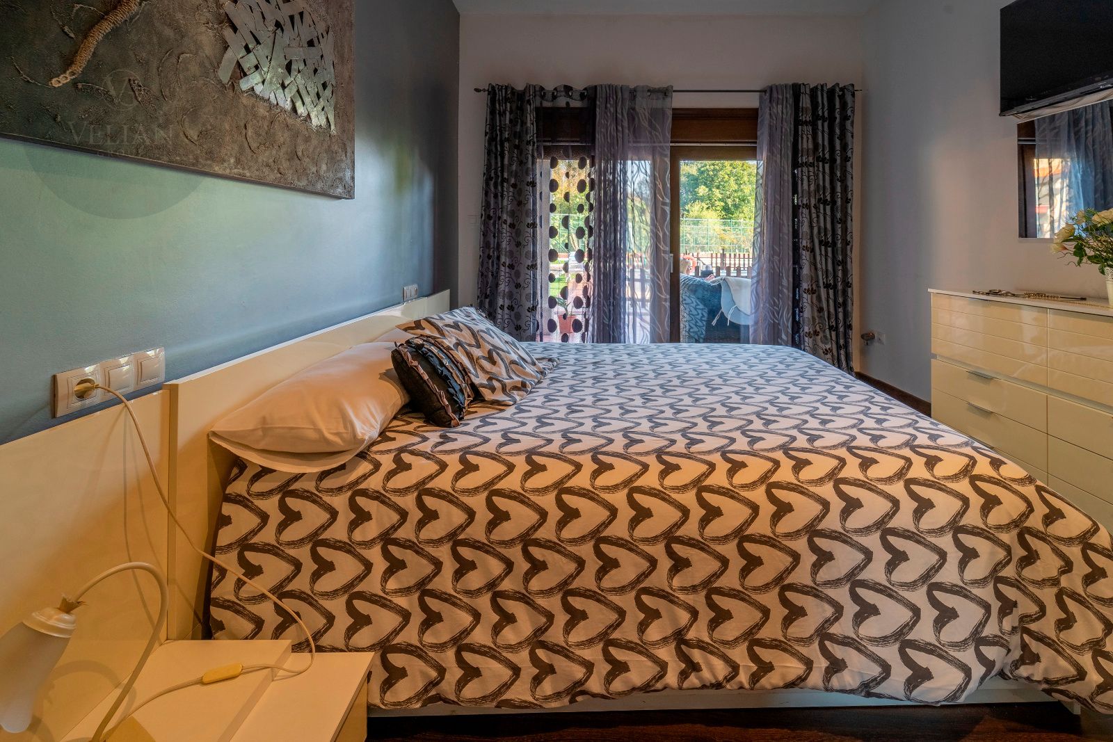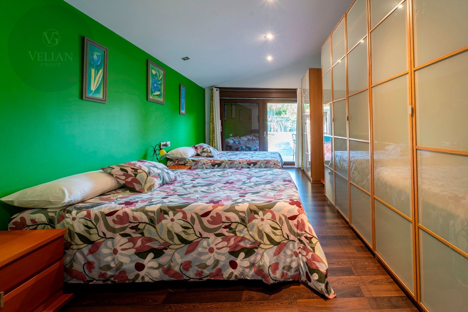 La casa principal cuenta con tres dormitorios y tres baños, destacando el dormitorio principal con acceso directo al exterior y un baño en suite que dispone de jacuzzi y ducha, creando un espacio íntimo de bienestar. El amplio salón comedor conecta con la terraza y el jardín, mientras que la cocina, moderna y completamente equipada, combina diseño y funcionalidad. La segunda construcción independiente añade dos dormitorios y un baño, perfecta para invitados o familiares que busquen privacidad dentro de la misma finca.