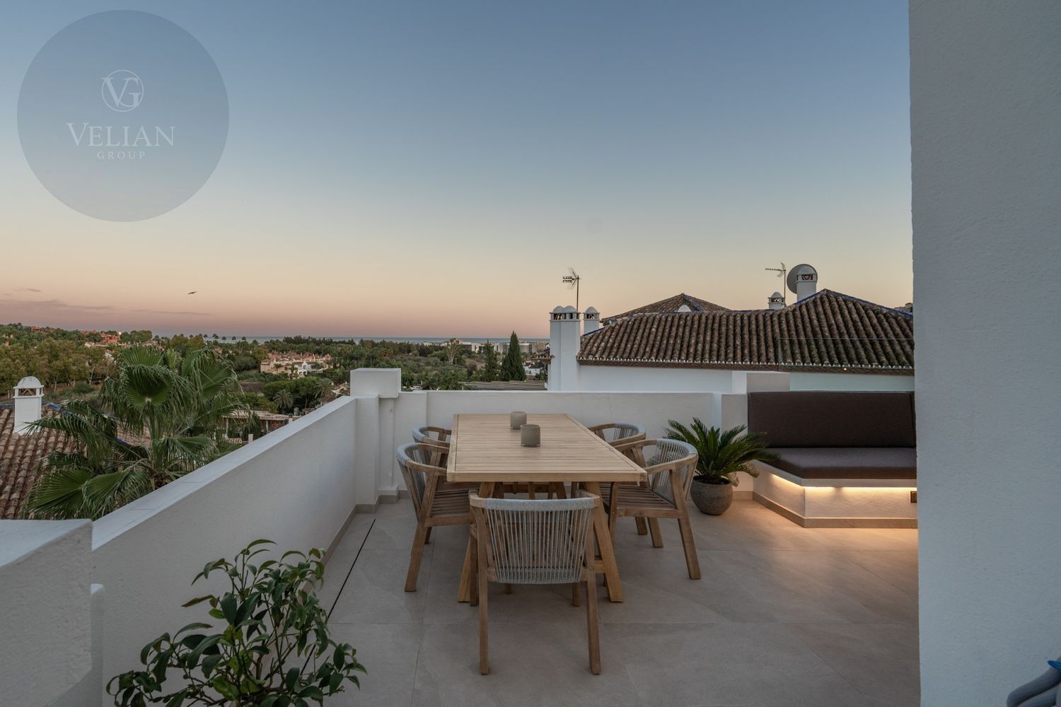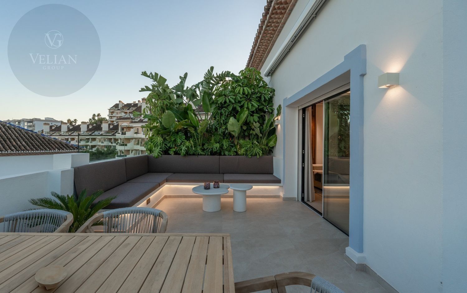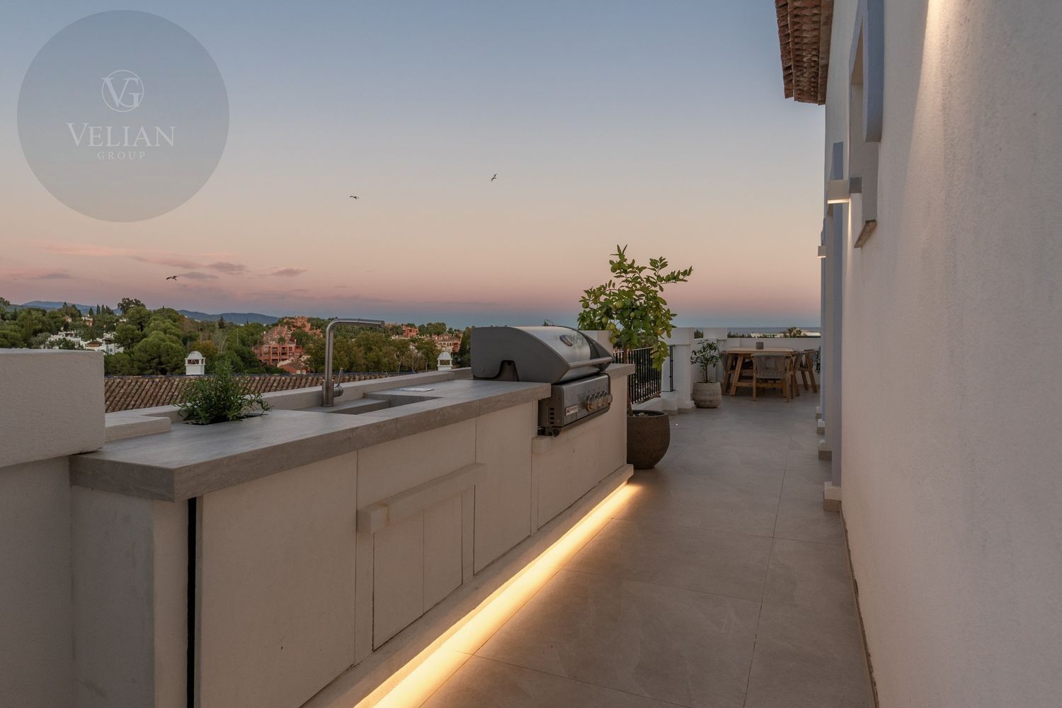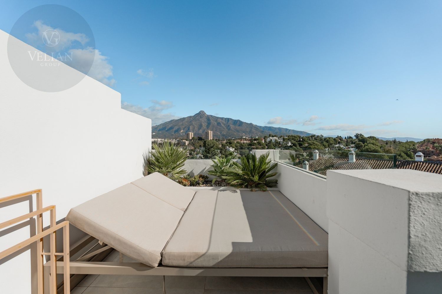 Presentamos un ático dúplex bellamente presentado, ubicado en el corazón de Nueva Andalucía. Esta excepcional vivienda de 3 dormitorios y 3 baños ofrece 160?m² de espacio interior exquisitamente diseñado, complementado por una generosa terraza privada de 66?m². Desde aquí, se pueden disfrutar vistas despejadas a la montaña de La Concha y panorámicas impresionantes al mar — el escenario perfecto para cenar al aire libre, relajarse o simplemente disfrutar del sol de Marbella.Ubicada en una zona privilegiada, la propiedad se encuentra cerca de campos de golf, el puerto, tiendas, restaurantes y la playa — ofreciendo el estilo de vida definitivo de la Costa del Sol. Este ático es ideal tanto para familias como para profesionales, con fácil acceso al transporte y al centro de la ciudad.En el interior, la distribución está cuidadosamente diseñada. Los tres dormitorios son en suite, lo que proporciona comodidad y privacidad. El salón es amplio y luminoso, con mobiliario a medida y una gran zona de comedor, ideal para recibir invitados. La cocina moderna está totalmente equipada y toda la vivienda cuenta con conexión WiFi, perfecta para trabajar desde casa o disfrutar del entretenimiento digital.El edificio ofrece excelentes zonas comunes, incluyendo ascensor, jardines paisajísticos y una piscina comunitaria resplandeciente. Los residentes también disfrutan de un garaje seguro y aparcamiento en la calle.La orientación es clave — con aspectos sur, sureste y suroeste, el apartamento recibe sol durante todo el día. Armarios empotrados, acceso a la terraza privada y la proximidad a todas las comodidades locales hacen de esta propiedad una verdadera joya.