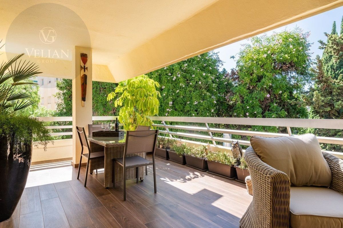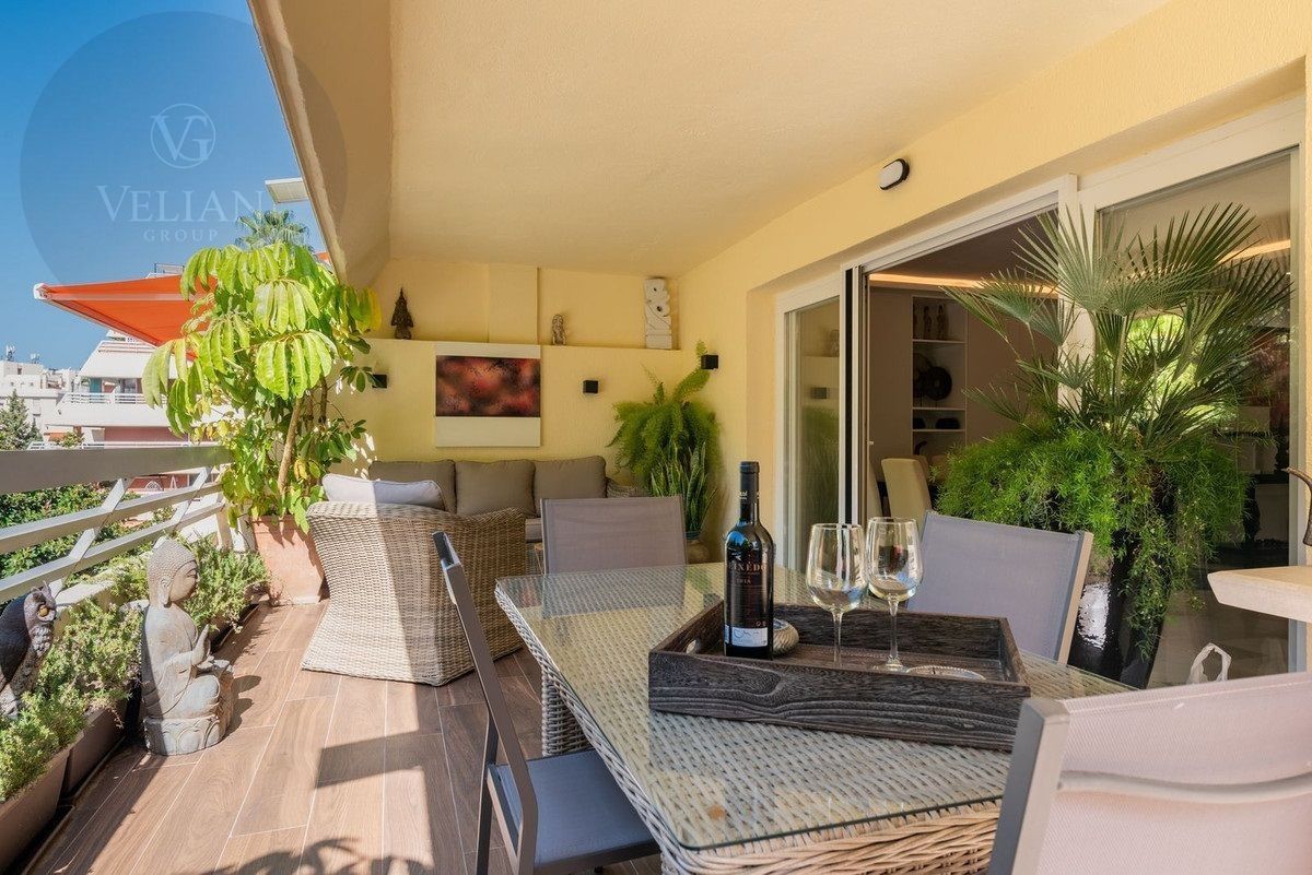 Apartamento bellamente renovado, ubicado en el centro de Marbella, con una amplia terraza con exuberantes vistas a la vegetación, ideal para una vida cómoda. La propiedad ofrece dos acogedoras habitaciones y dos baños modernos y elegantes.