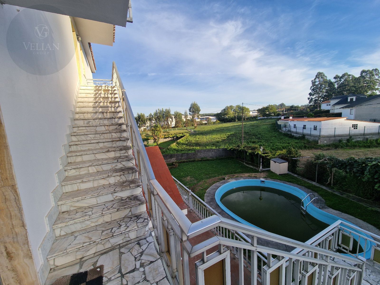 En una tranquila zona residencial de Bergondo, con excelentes accesos hacia A Coruña, Sada y Betanzos, y rodeado de naturaleza y todos los servicios esenciales, se encuentra este chalet independiente de 462 m² sobre una amplia parcela de más de 2.600 m² con piscina privada, amplia terraza y jardín.