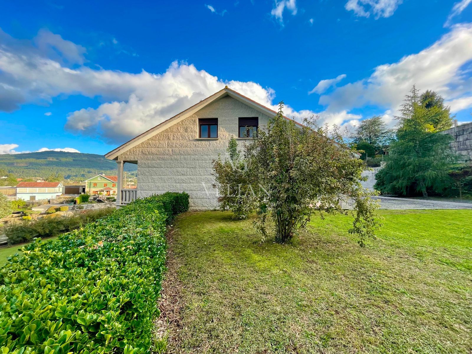 En una tranquila zona residencial del municipio de Barro, a pocos minutos de Pontevedra y con excelentes accesos a la autovía y principales servicios, se encuentra este chalet independiente de 400 m², construido sobre una amplia parcela de 5.000 m².