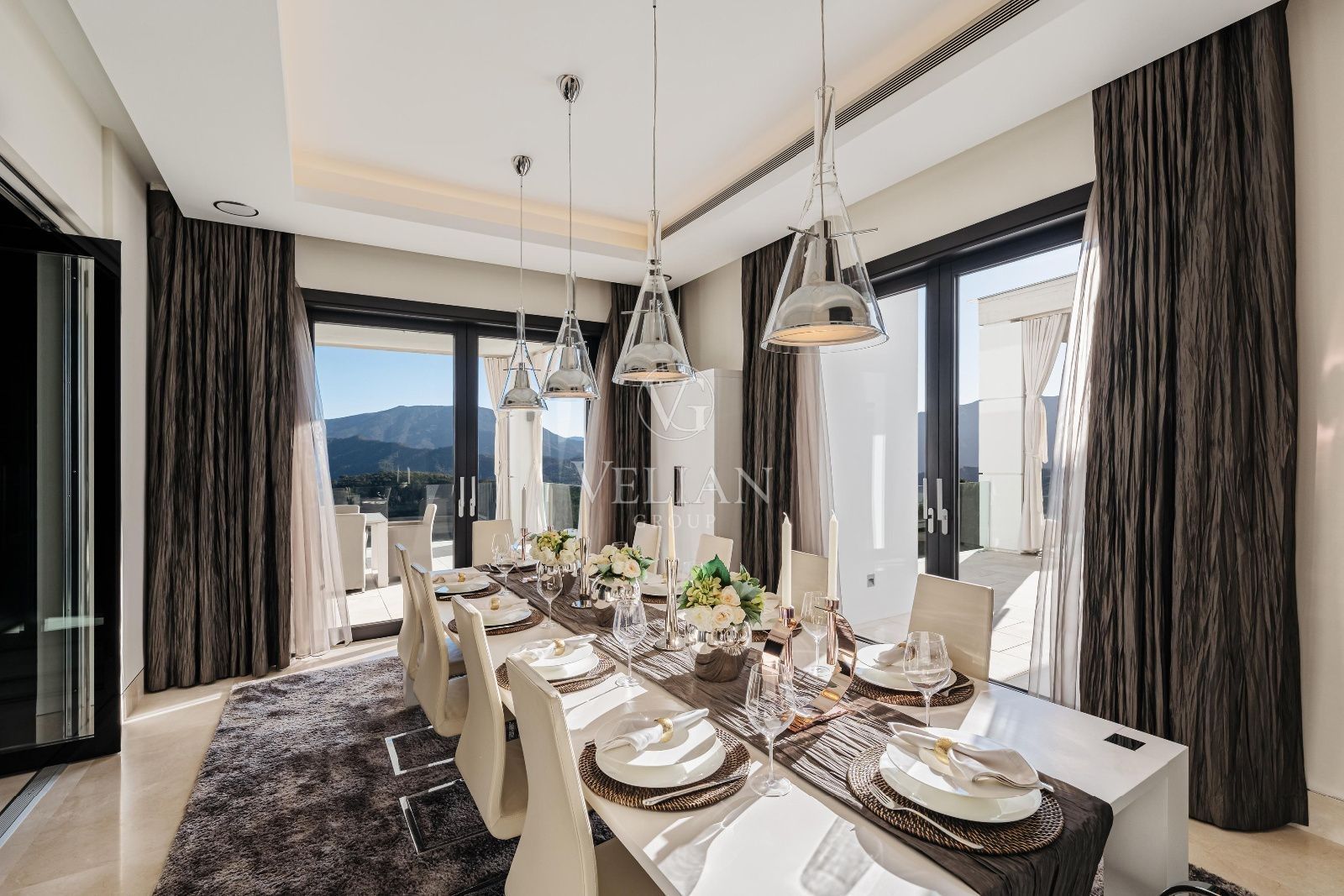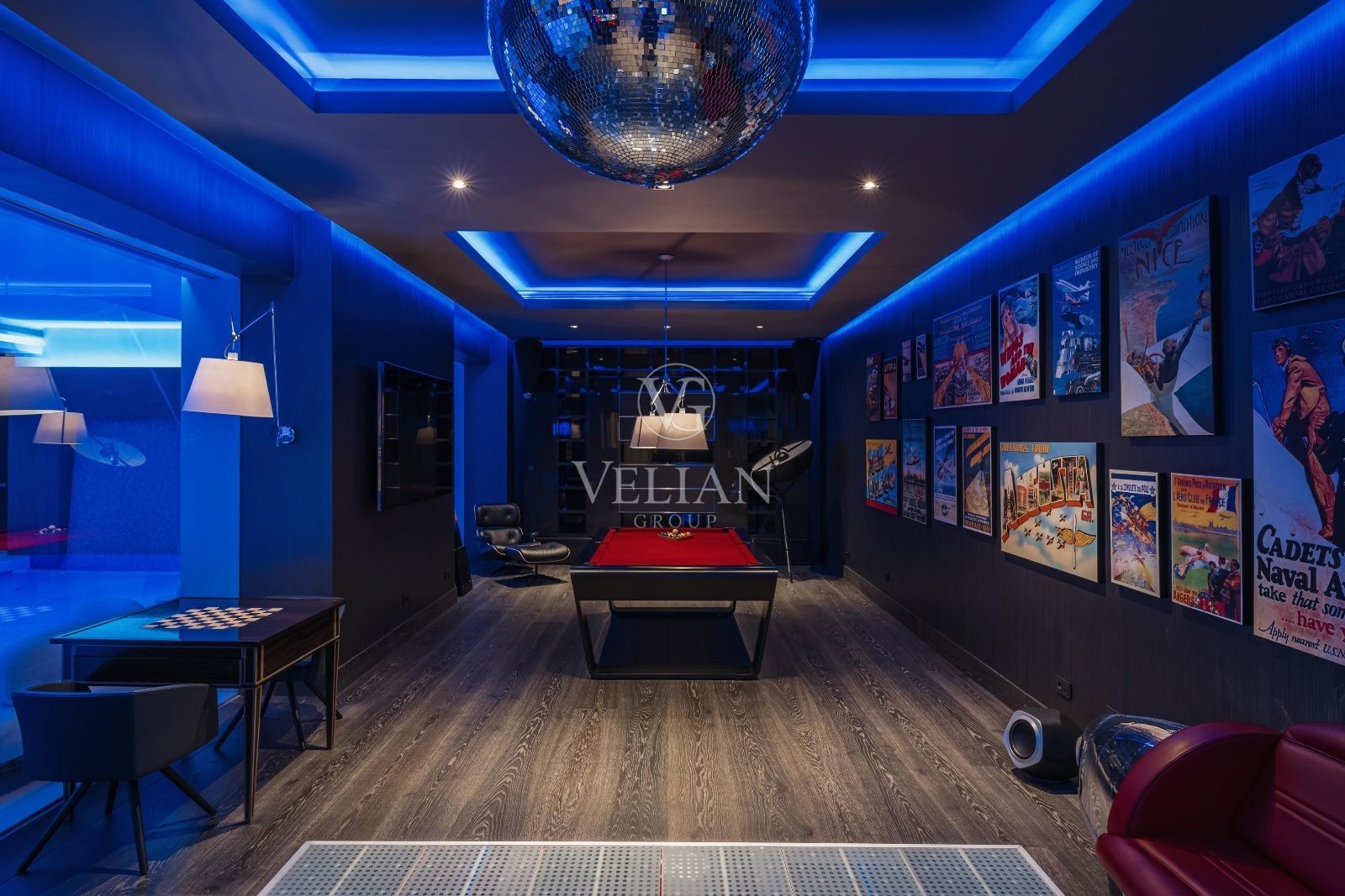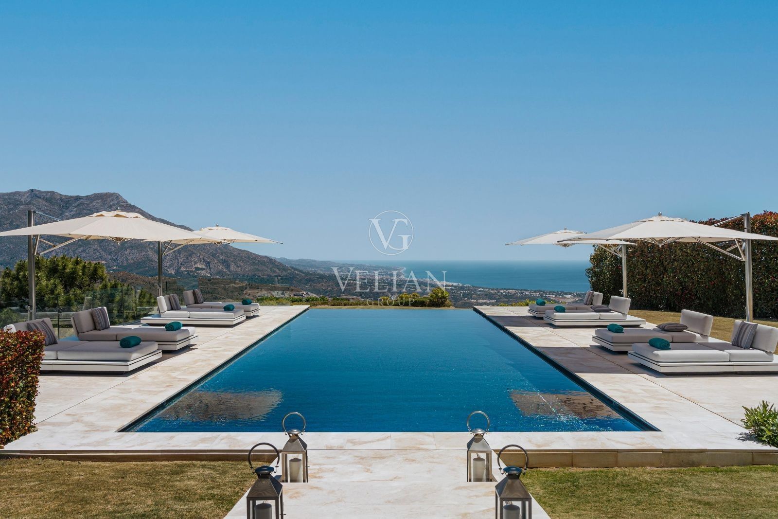 Esta villa cuenta con 7 dormitorios y 9 baños distribuidos en tres plantas, todas accesibles mediante ascensor. Mobiliario de alta gama de prestigiosas marcas como Smania, Fendi, Manutti y Technogym, junto con televisores y altavoces Bang & Olufsen, embellecen los interiores. La propiedad incluye una sala de cine, sala de juegos, spa y gimnasio completo con piscina climatizada interior, jacuzzi, sauna y baño turco.