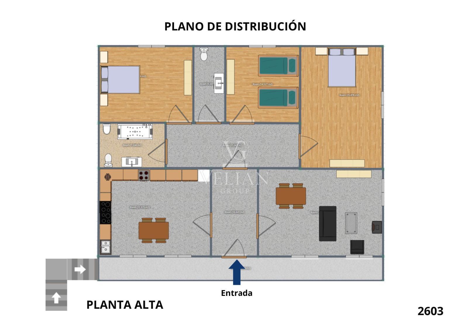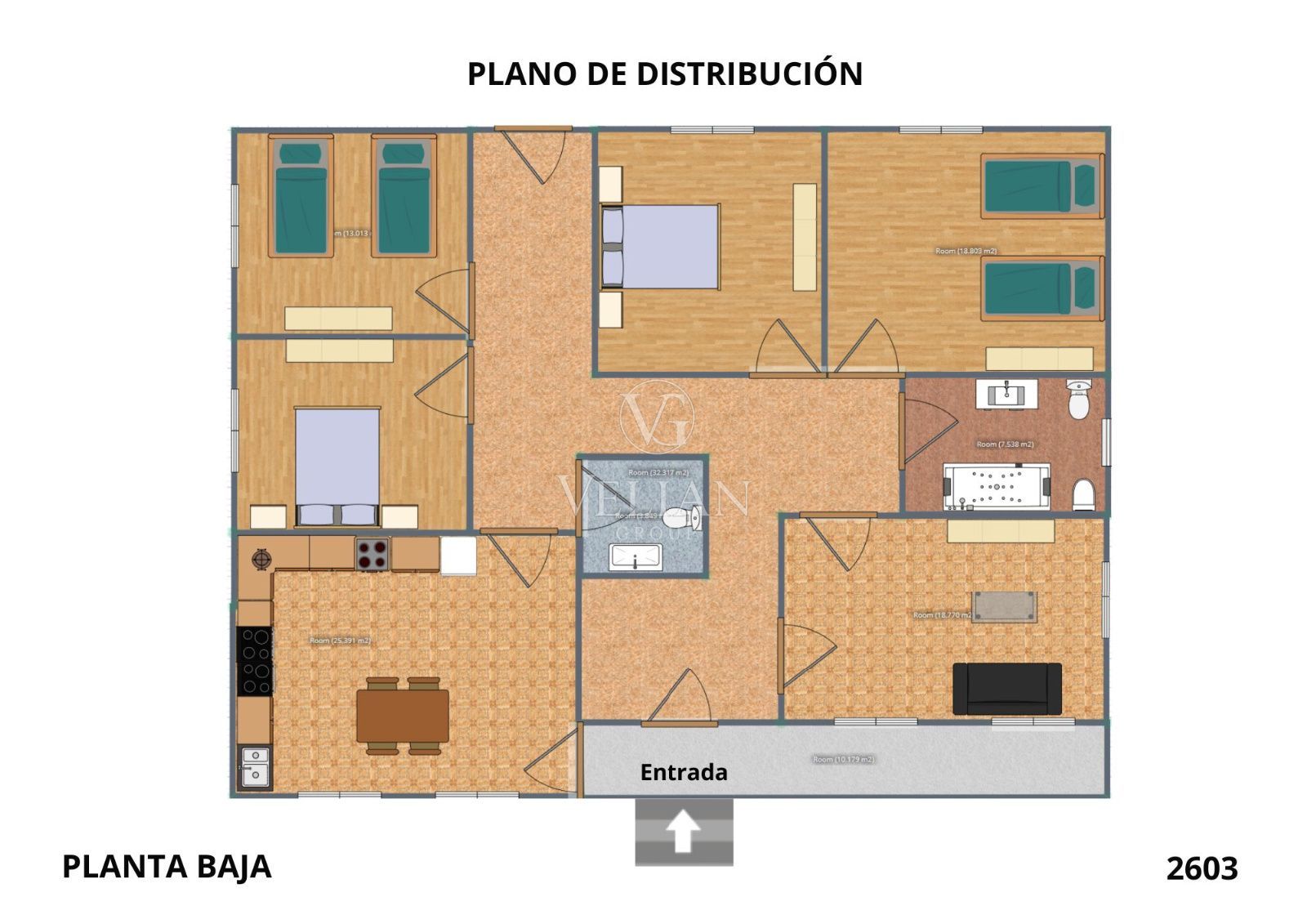 La vivienda cuenta con 245 m² construidos, distribuidos en dos plantas. Cada una dispone de cocina, salón-comedor, tres dormitorios y dos baños, sumando un total de seis habitaciones y cuatro baños, una distribución perfecta para explotación turística o uso multifamiliar.