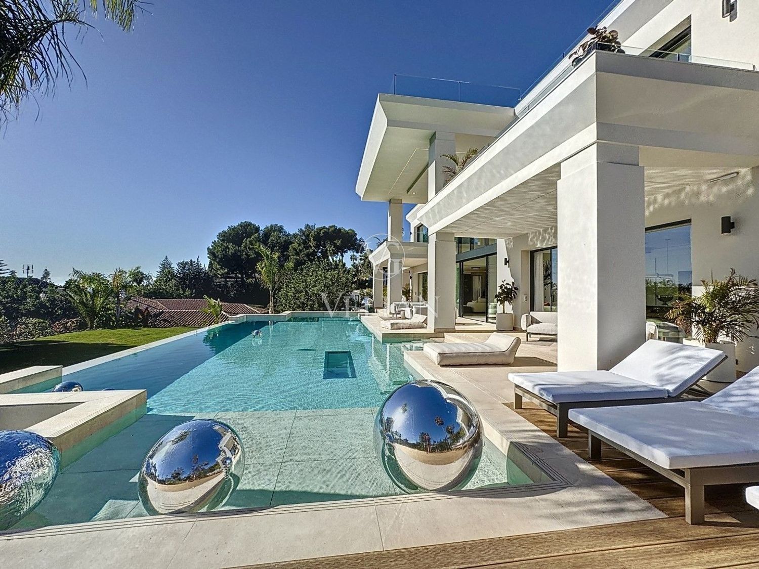 Este chalet único situado en la prestigiosa comunidad de Sierra Blanca cumplirá los sueños de los más exigentes. Situada en una gran parcela de 2633 m2, esta villa contemporánea ofrecerá 7 dormitorios y todas las prestaciones y comodidades distribuidas en cuatro niveles. En la planta baja con un espectacular hall de distribución de doble altura da la bienvenida a la casa, conectando con los dos dormitorios con baños en suite y con la zona de salón- concepto abierto con cocina-comedor y sala de estar. Esta zona tiene acceso con puertas correderas de cristal de suelo a techo que proporcionan vistas a la terraza, al jardín y a la piscina creando una fantástica luz natural durante todo el día. En el nivel superior, encontrará 3 dormitorios todos con baños en suite, el dormitorio principal muy grande en tamaño ocupa la mitad de este nivel, con un gran armario y baño y dos terrazas con impresionantes vistas panorámicas al mar.Hay otros dos dormitorios en este nivel con baños en suite y también una oficina. En la terraza de la azotea se encuentra una zona chill out, comedor, cocina exterior y un jacuzzi, todo ello con vistas panorámicas de 360º. En el nivel inferior tenemos la zona de entretenimiento y servicio de la propiedad. Consta de un enorme garaje para 4 coches, sala de cine, gimnasio, zona de spa con Hamman y Sauna y piscina cubierta climatizada. También en esta zona se encuentra la zona de lavandería, el apartamento del servicio y una habitación de invitados con patio inglés. La propiedad cuenta con un ascensor que conecta todos los niveles, calefacción por suelo radiante en toda la casa y domótica, entre otras características. Una casa de ensueño para aquellos que buscan y esperan lo mejor en la zona más demandada de Marbella, Sierra Blanca que estaría lista para el verano de 2024.SIERRA BLANCA: UBICACIÓN Y ALREDEDORES DE ESTE INMUEBLESierra Blanca es una de las comunidades cerradas más prestigiosas y seguras de Marbella, a menudo llamada el Beverly Hills de Marbella debido a las grandes avenidas y las hermosas villas que conforman esta urbanización muy elegante. La comunidad toma su nombre de la sierra de Sierra Blanca desde la que la montaña de La Concha se eleva sobre la urbanización. Sierra Blanca se encuentra a 300 metros sobre el nivel del mar, proporcionando a la mayoría de las villas con fantásticas vistas al mar mediterráneo hasta África, así como a la exuberante y verde Milla de Oro de Marbella. Convenientemente ubicadas, a pocos minutos en coche del centro de Marbella, la playa y Puerto Banús, las hermosas propiedades en Sierra Blanca siempre han disfrutado de una demanda muy alta de la clientela internacional adinerada que buscan una segunda vivienda en una prestigiosa comunidad, con privacidad y la más alta seguridad, o como residencia principal para familias debido a la muy recomendable escuela internacional situada junto a Sierra.