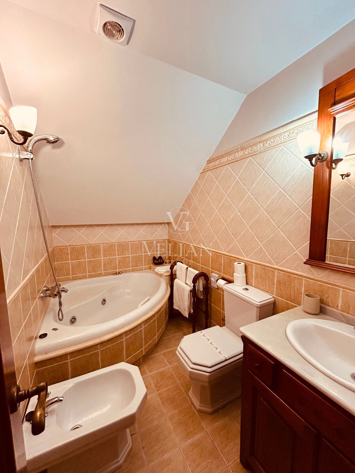 La planta superior alberga cinco dormitorios dobles y un dormitorio individual, todos ellos con baño en suite y orientación exterior, lo que aporta luminosidad y comodidad tanto para uso turístico como familiar.