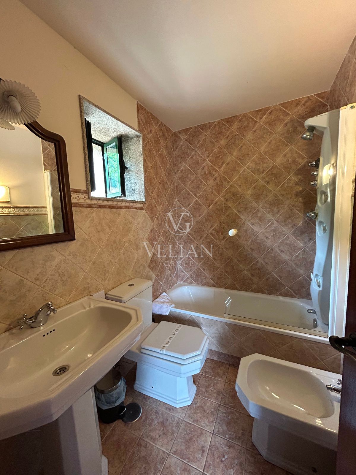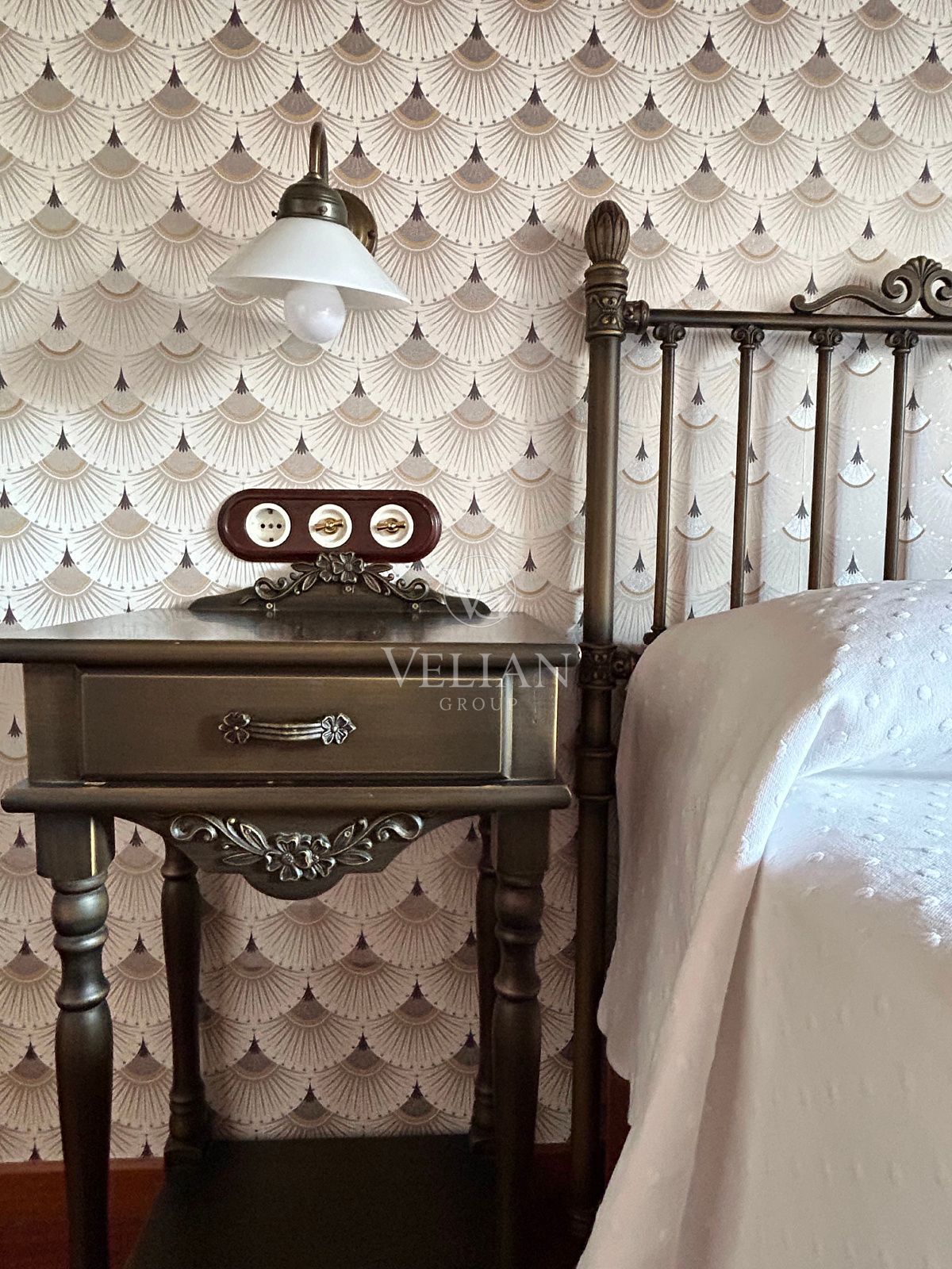 La vivienda conserva elementos originales como el horno de piedra, combinados con instalaciones actualizadas: electricidad renovada, sistema de alarma antirrobo e incendios y radiadores de fundición Roca, que garantizan confort y eficiencia.