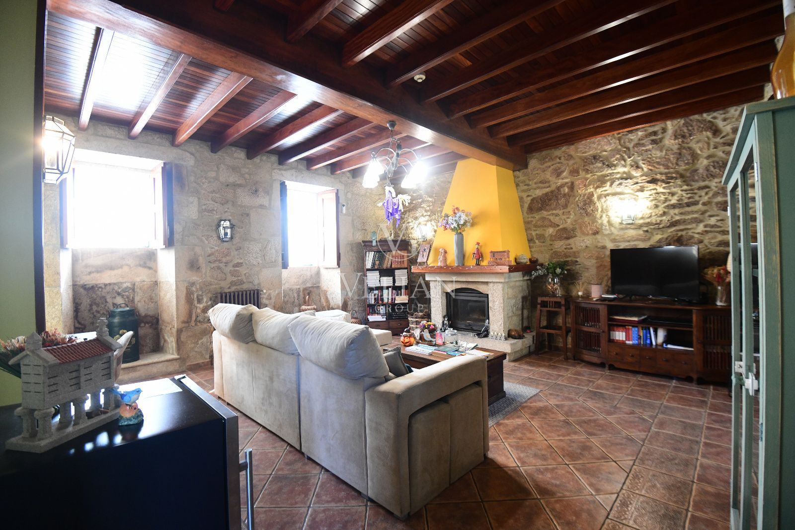 En el exterior, la finca dispone de porche con mobiliario, zona ajardinada muy cuidada, hórreo tradicional gallego y espacio de aparcamiento dentro de la parcela.