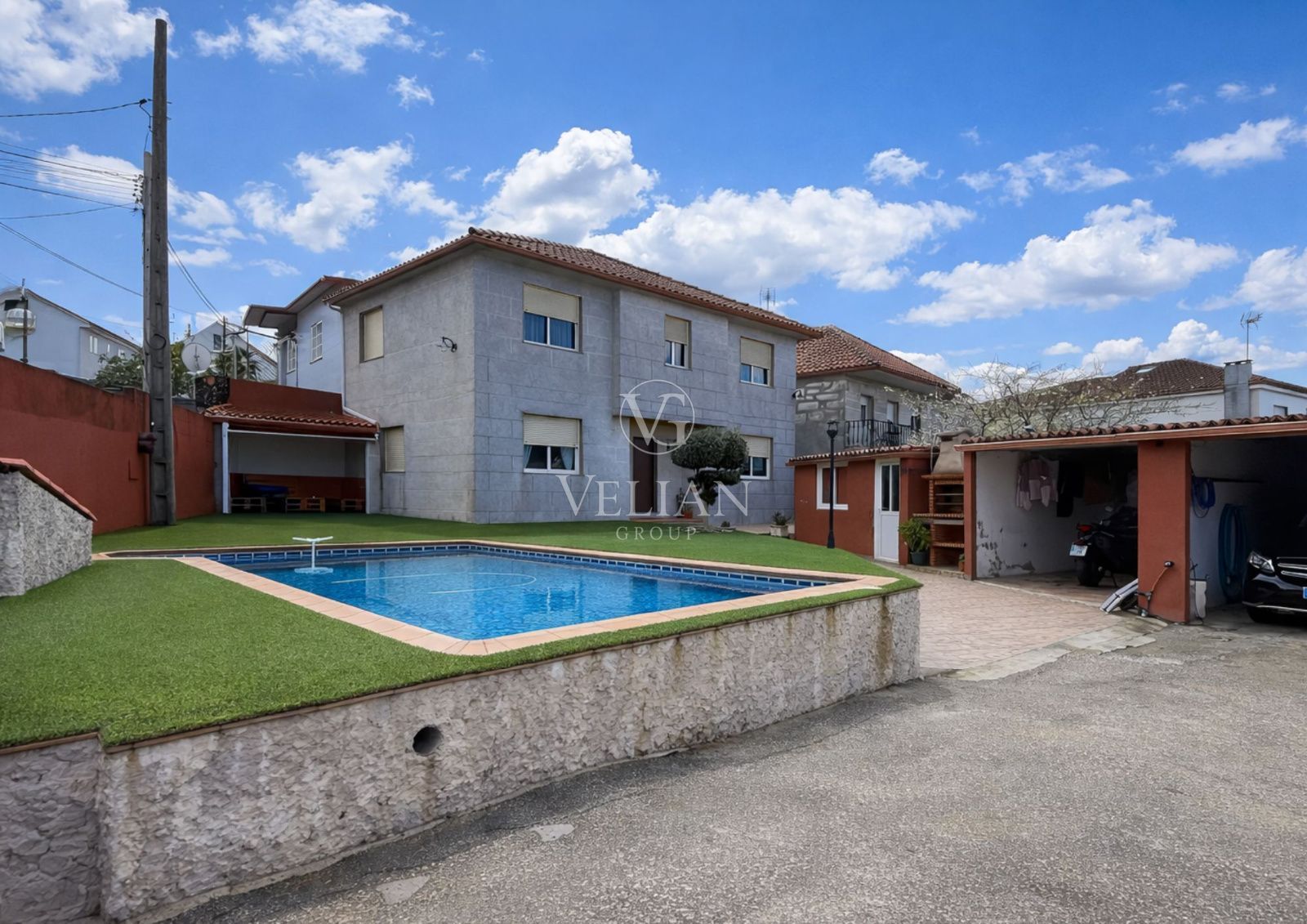 Chalet adosado con piscina y merendero en Vigo.