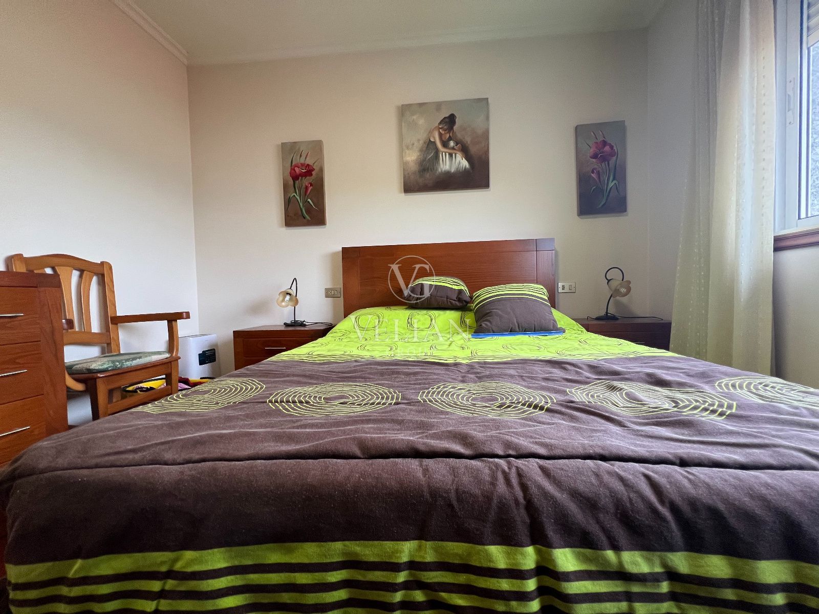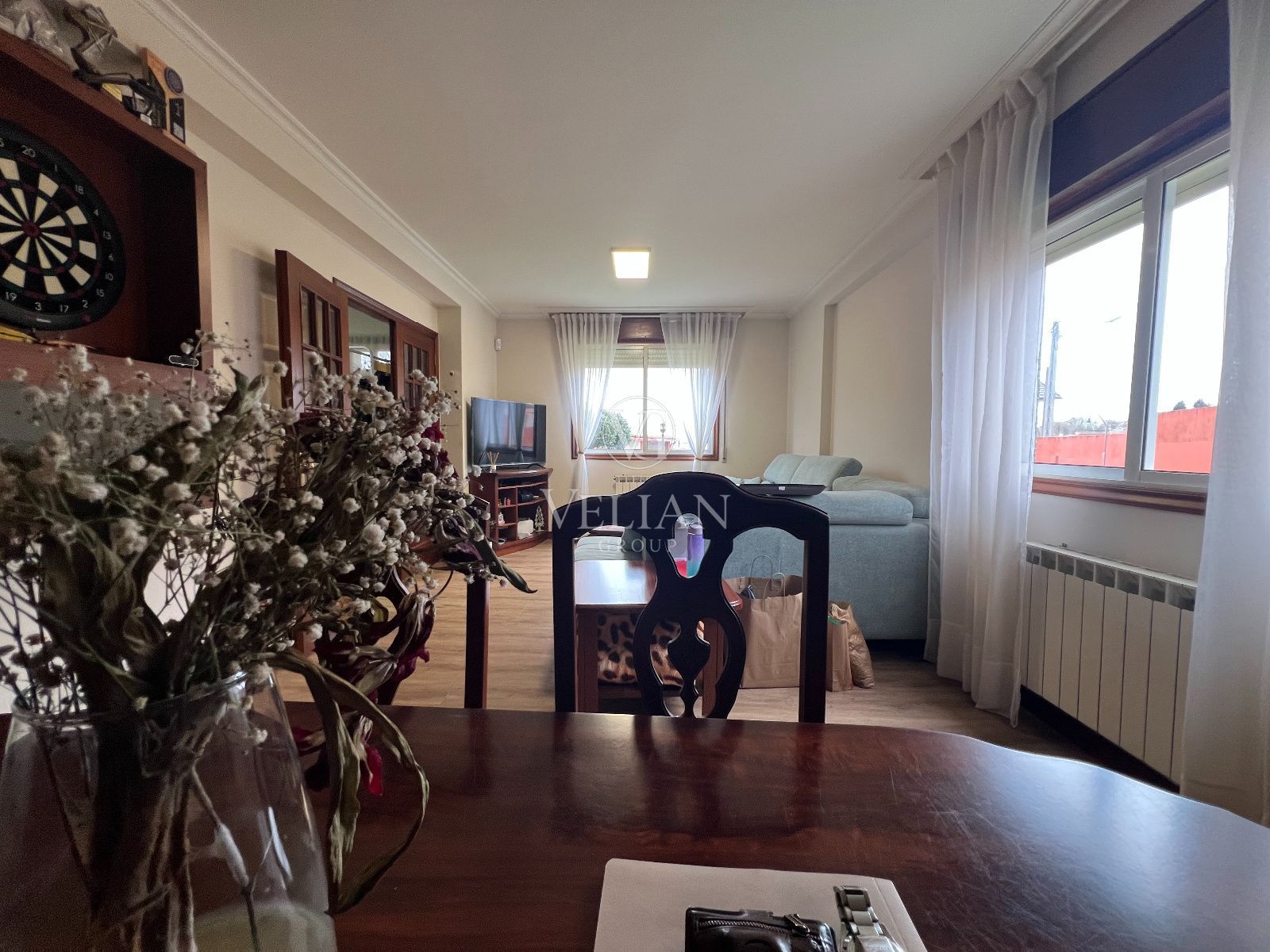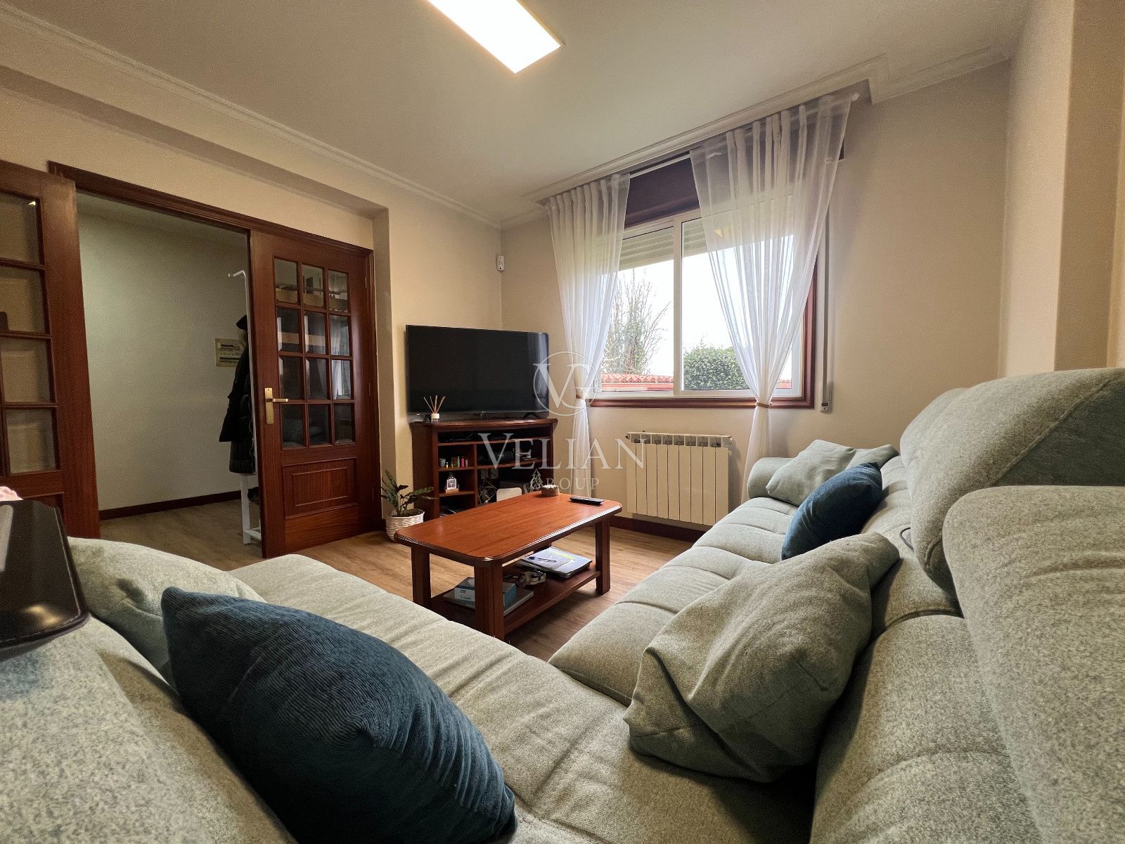 La vivienda dispone de un salón-comedor amplio y muy luminoso, una cocina independiente completamente amueblada, con buena capacidad de almacenamiento y funcionalidad, cuatro habitaciones con armarios, dos baños completos y calefacción de gasoil, lo que garantiza confort durante todo el año.