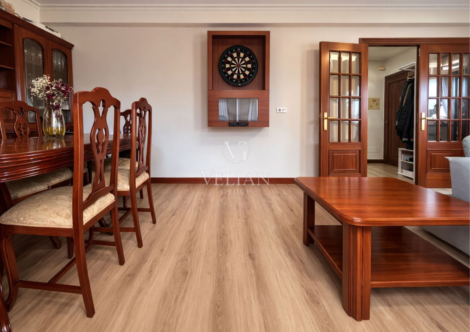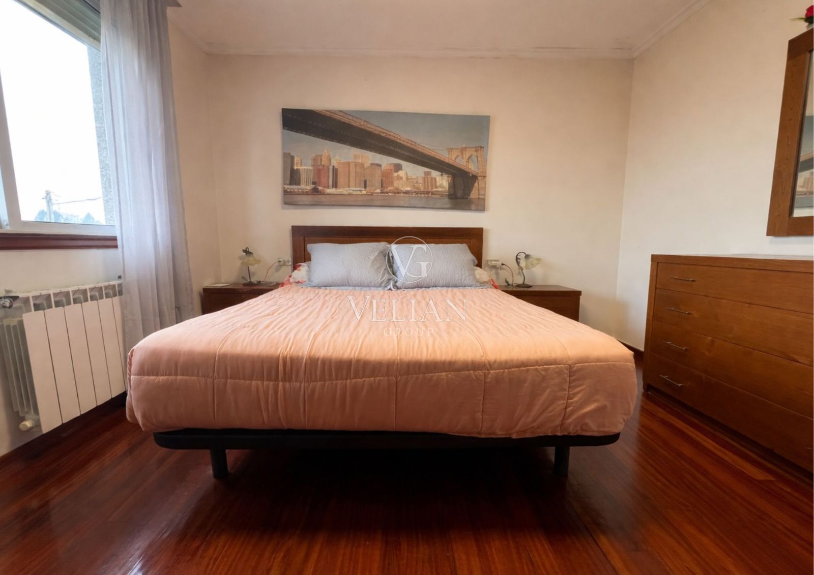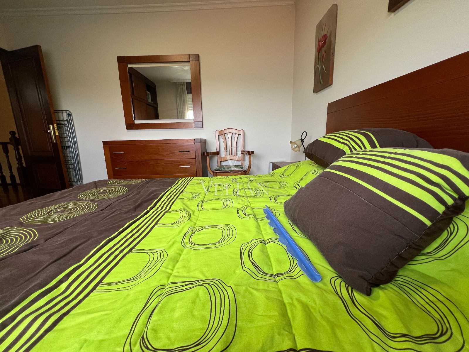 La vivienda dispone de un salón-comedor amplio y muy luminoso, una cocina independiente completamente amueblada, con buena capacidad de almacenamiento y funcionalidad, cuatro habitaciones con armarios, dos baños completos y calefacción de gasoil, lo que garantiza confort durante todo el año.
