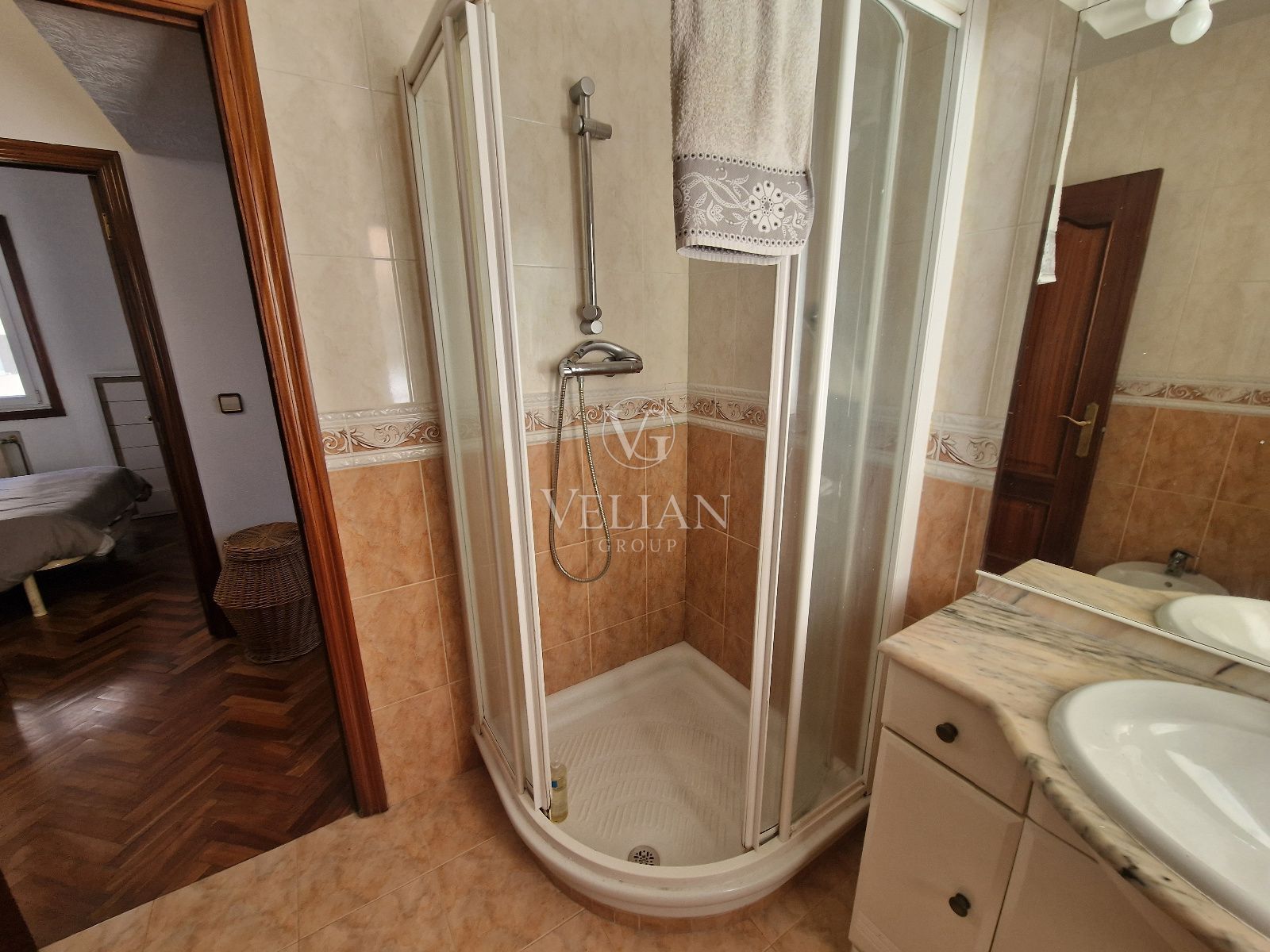 Se distribuye en tres habitaciones con armarios empotrados, dos baños completos con ducha, una amplia cocina-comedor y un salón confortable. Cuenta además con suelos de parquet, que aportan calidez a toda la vivienda.