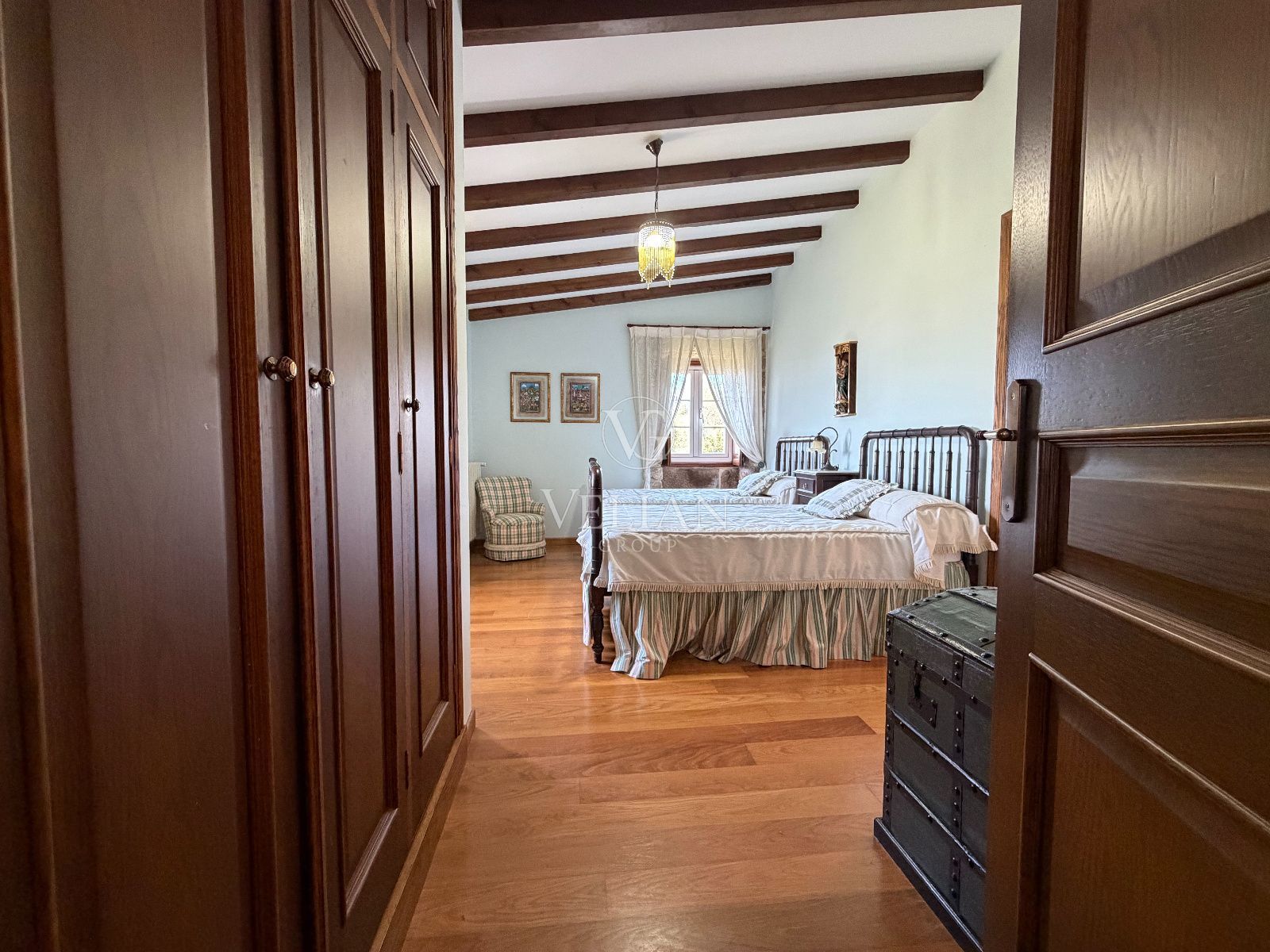 En cuanto a calidades, la vivienda incorpora materiales nobles, con suelos de Porcelanosa en zonas comunes y madera natural en los dormitorios, además de mobiliario de madera maciza y piezas de diseño, que aportan una estética elegante y atemporal.