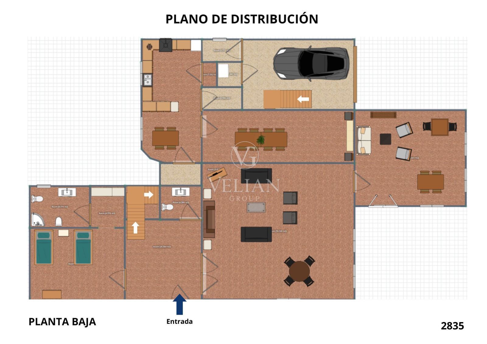 La distribución destaca por su funcionalidad y comodidad. Dispone de 3 amplios dormitorios con vestidor y baño en suite, incluyendo una suite en planta baja, muy práctica para el día a día. En total, la vivienda cuenta con 3 baños completos y 1 aseo.