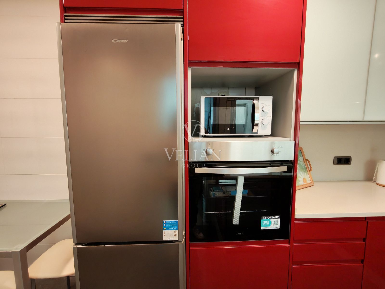 La vivienda se encuentra en una quinta planta con ascensor, es exterior y muy luminosa, gracias a su altura y orientación. Cuenta con 113 m² construidos y se distribuye en 4 dormitorios con armarios, 2 baños completos, salón y una cocina comedor independiente completamente amueblada, que conecta con una zona de lavado independiente, aportando funcionalidad al día a día.
