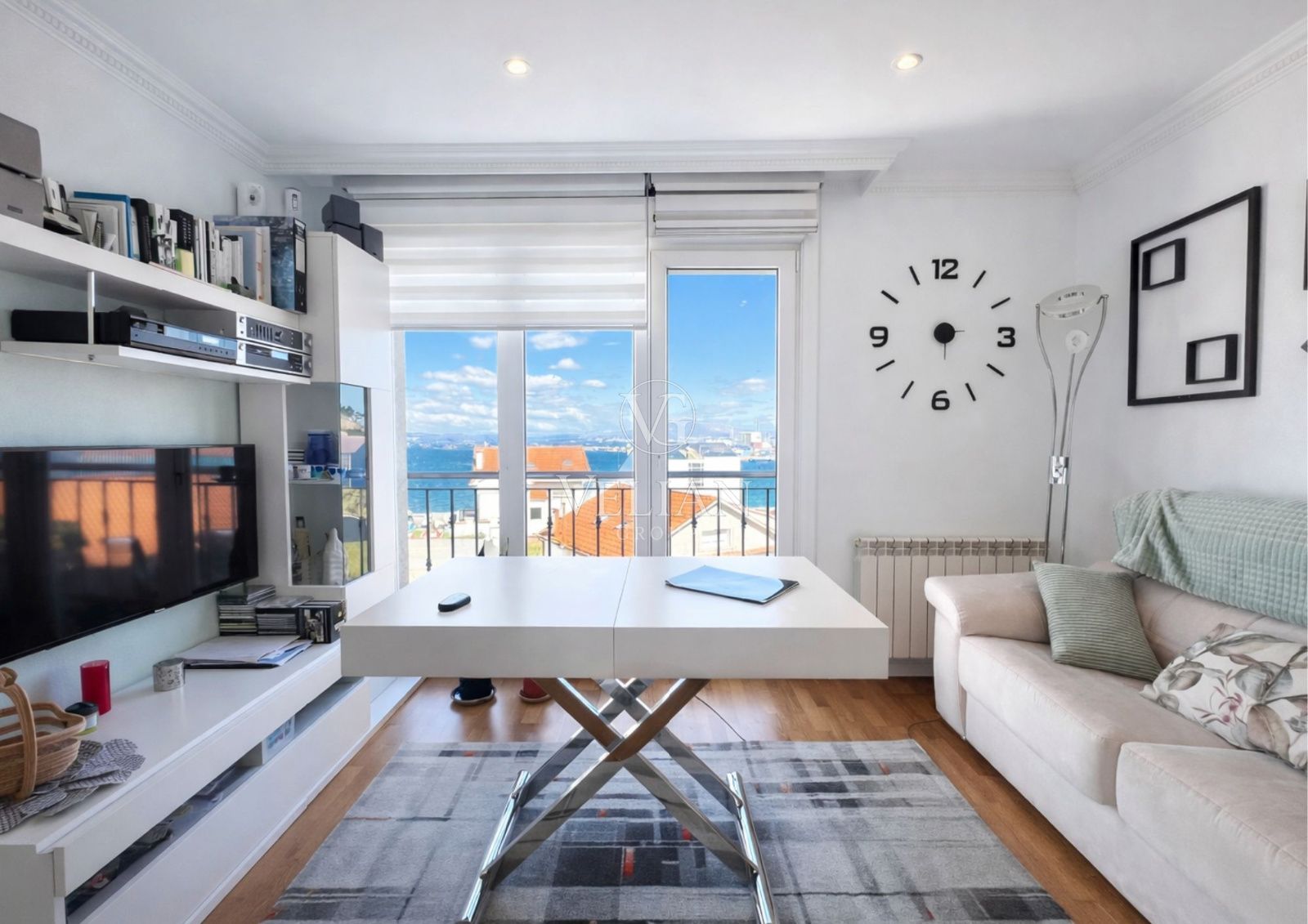 El piso cuenta con 84 m² construidos (44 m² útiles) y está reformado y listo para entrar a vivir, destacando por sus espectaculares vistas abiertas a la Ría de Arousa y su orientación sureste, que aporta luz natural durante gran parte del día.