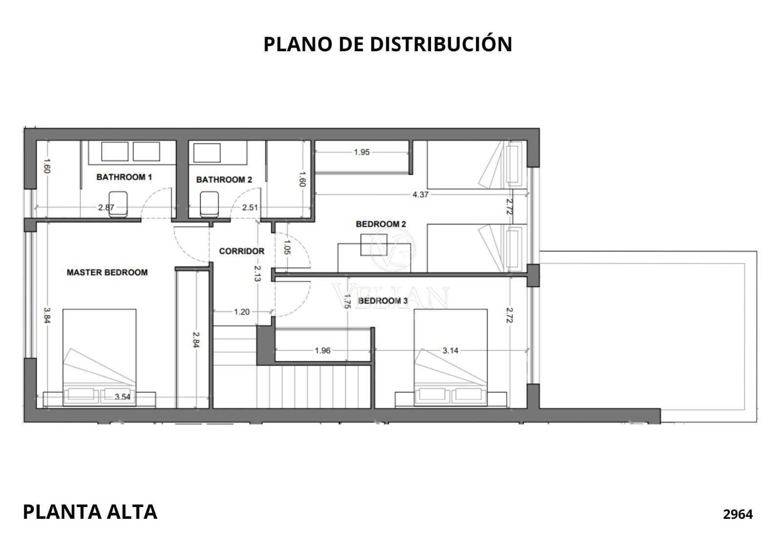En la planta superior se distribuyen 3 dormitorios, incluyendo una suite principal con baño privado, y un segundo baño completo.